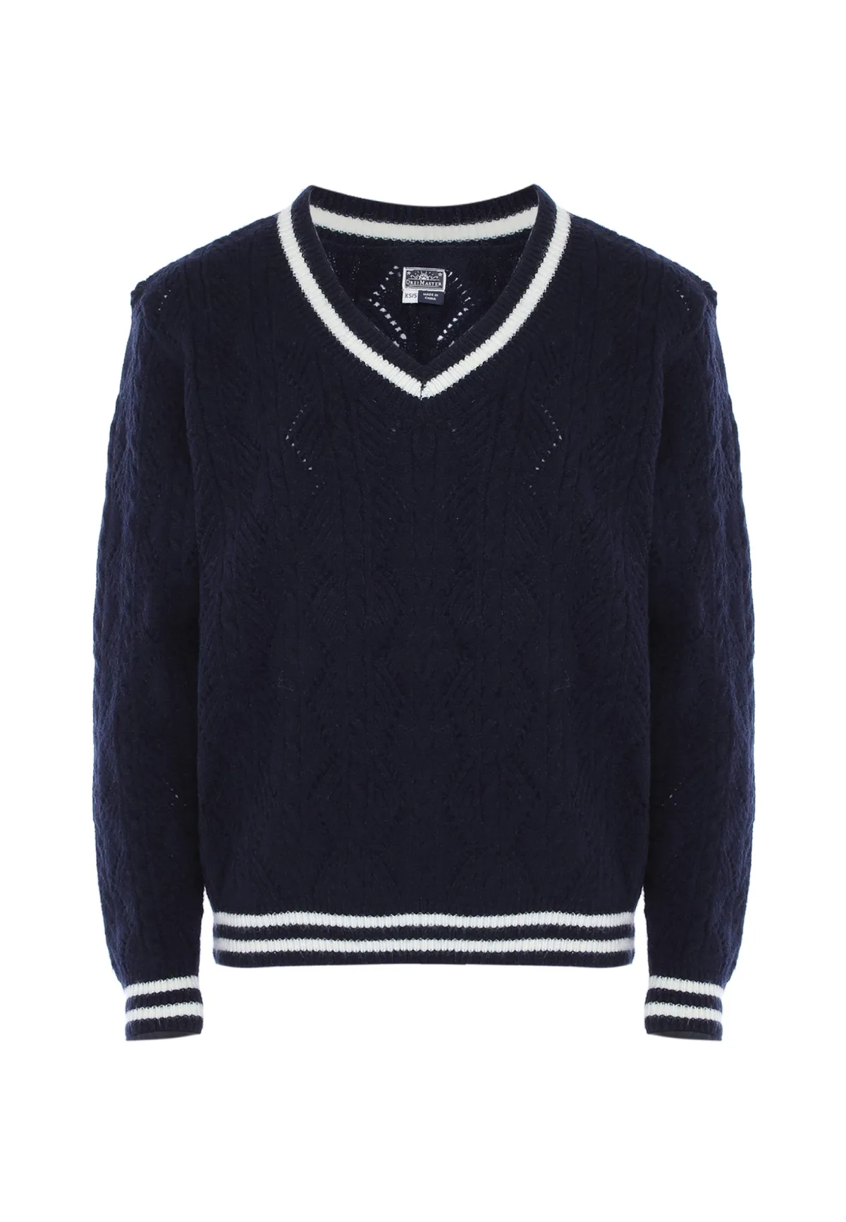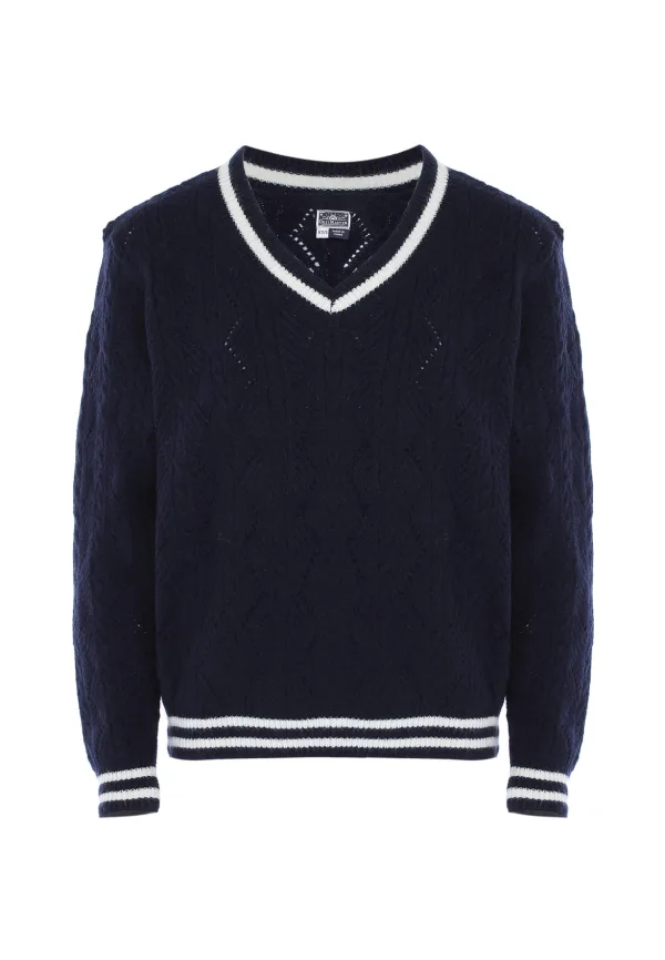 Deze trui van DreiMaster Maritim is gemaakt van een zachte garenmix en is een casual toevoeging aan je gebreide kleding. Het zachte ajourbreisel met V-hals en contrasterende strepen nodigt uit tot een strandwandeling. Pullover trui