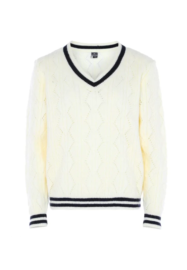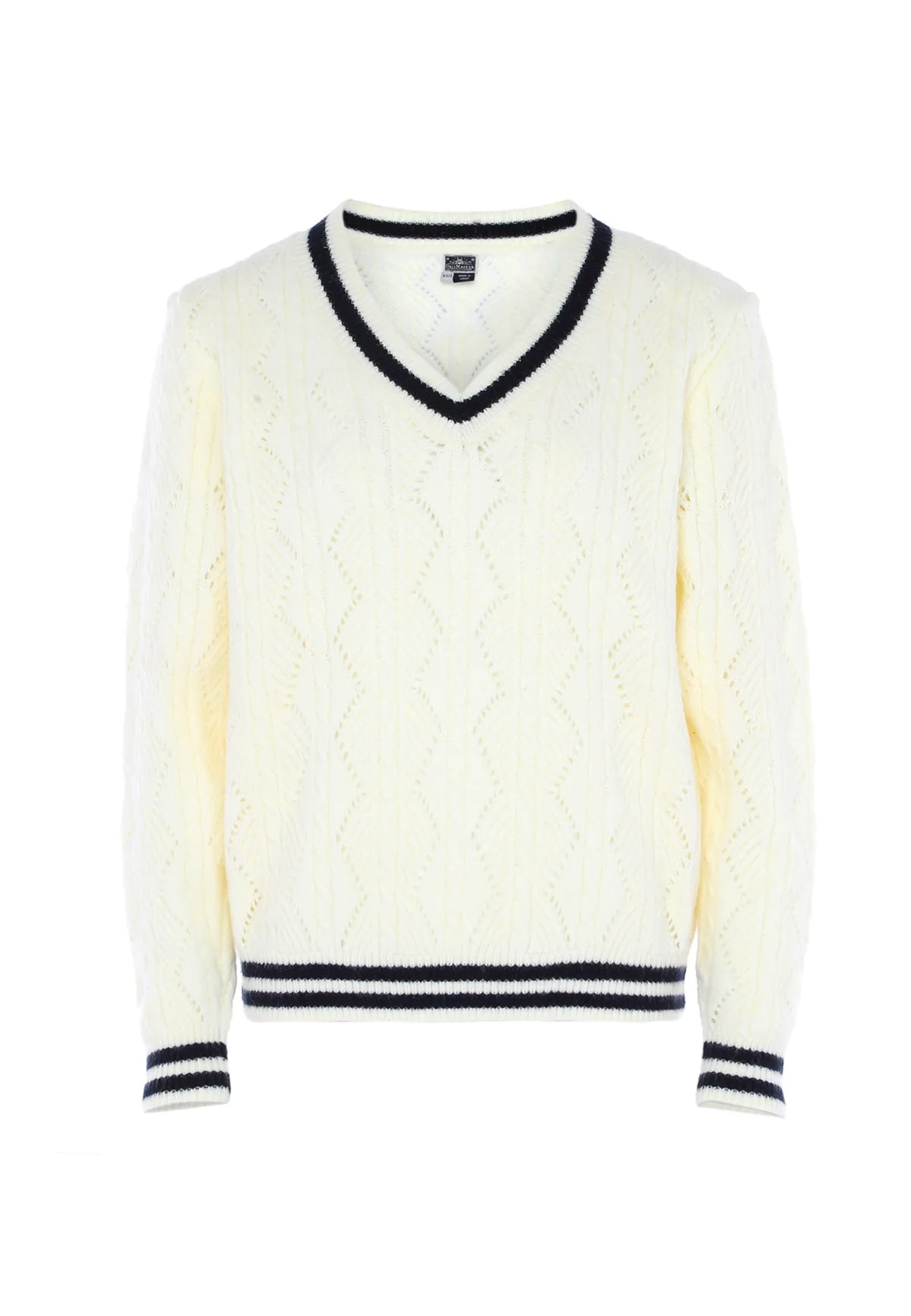 Deze trui van DreiMaster Maritim is gemaakt van een zachte garenmix en is een casual toevoeging aan je gebreide kleding. Het zachte ajourbreisel met V-hals en contrasterende strepen nodigt uit tot een strandwandeling. Pullover trui