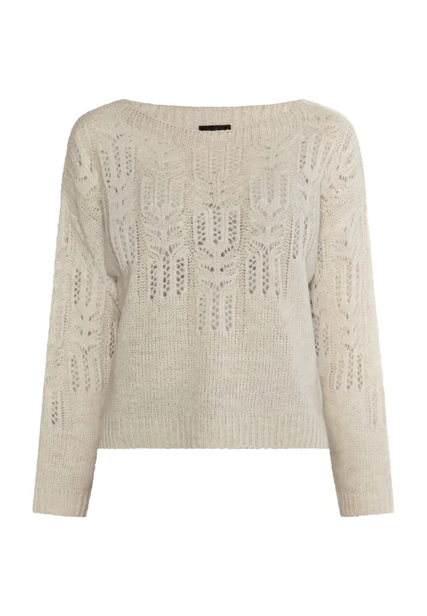 De charmante trui van DreiMaster Klassik overtuigt door zijn uitgebreide krullenpatroon, boothals en losse pasvorm. De zachte garenmix met wol en viscose is verwerkt in Italië, heeft een elegante uitstraling en voelt zacht aan. De laatste geribde manchetten complementeren het ontwerp. Jumper