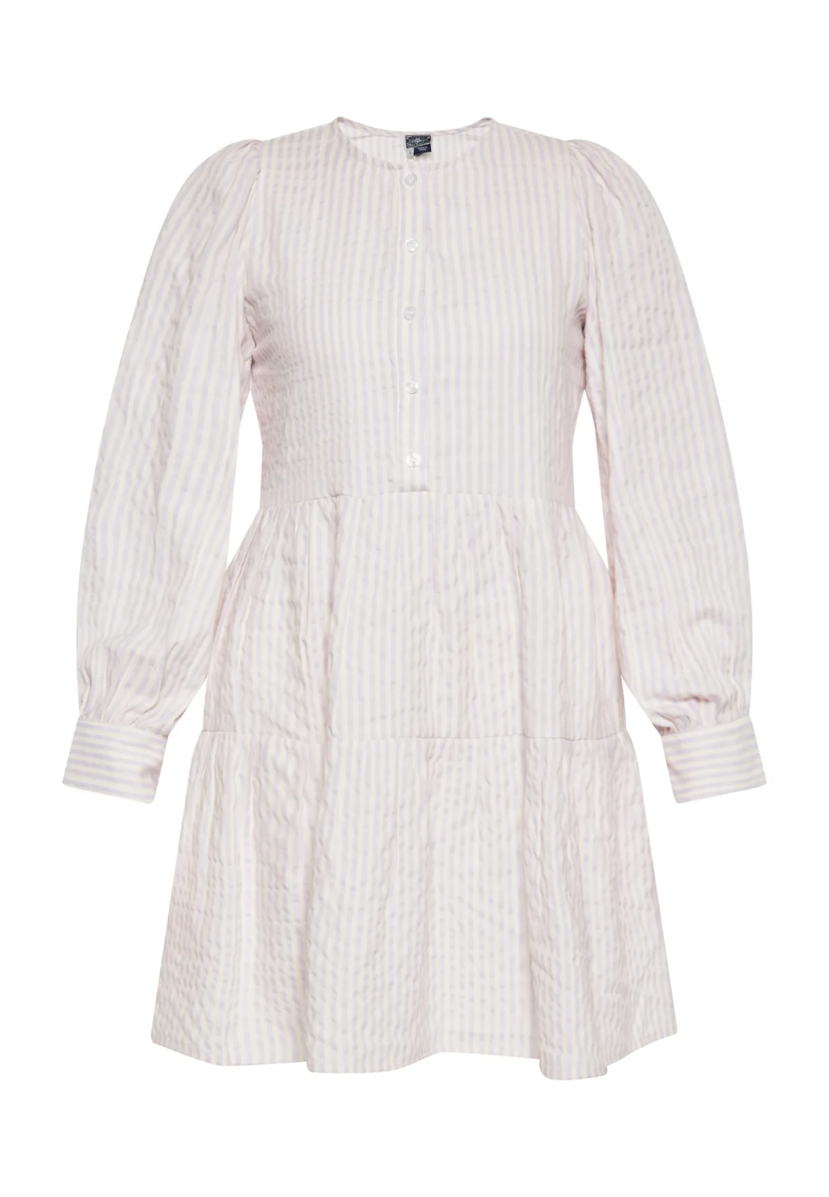 Benadruk uw zomerstijl met deze mini-shirtjurk met lange mouwen en een modieuze ronde halslijn. De lange mouwen met knoopsluiting aan de voorkant zijn afgewerkt met stijlvolle manchetten met knopen, waardoor ze perfect zijn voor elke informele gelegenheid. Een jurk met een subtiel gestreept patroon dat charme toevoegt. Jurk