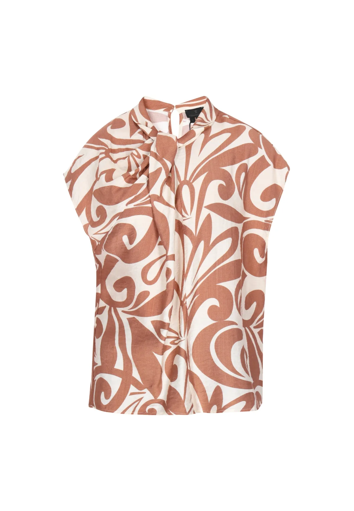 Blouse type: Blouseshirt; Design: Om te knopen/binden; Type sluiting: Knoopsluiting; Materiaal: Viscose; Kraag: Strik; Details: Cut-outs, Gedrapeerd; Extra's: All-over patroon; Pasvorm: Losse pasvorm; Armlengte: Kwartmouw; Lengte: Normale lengte