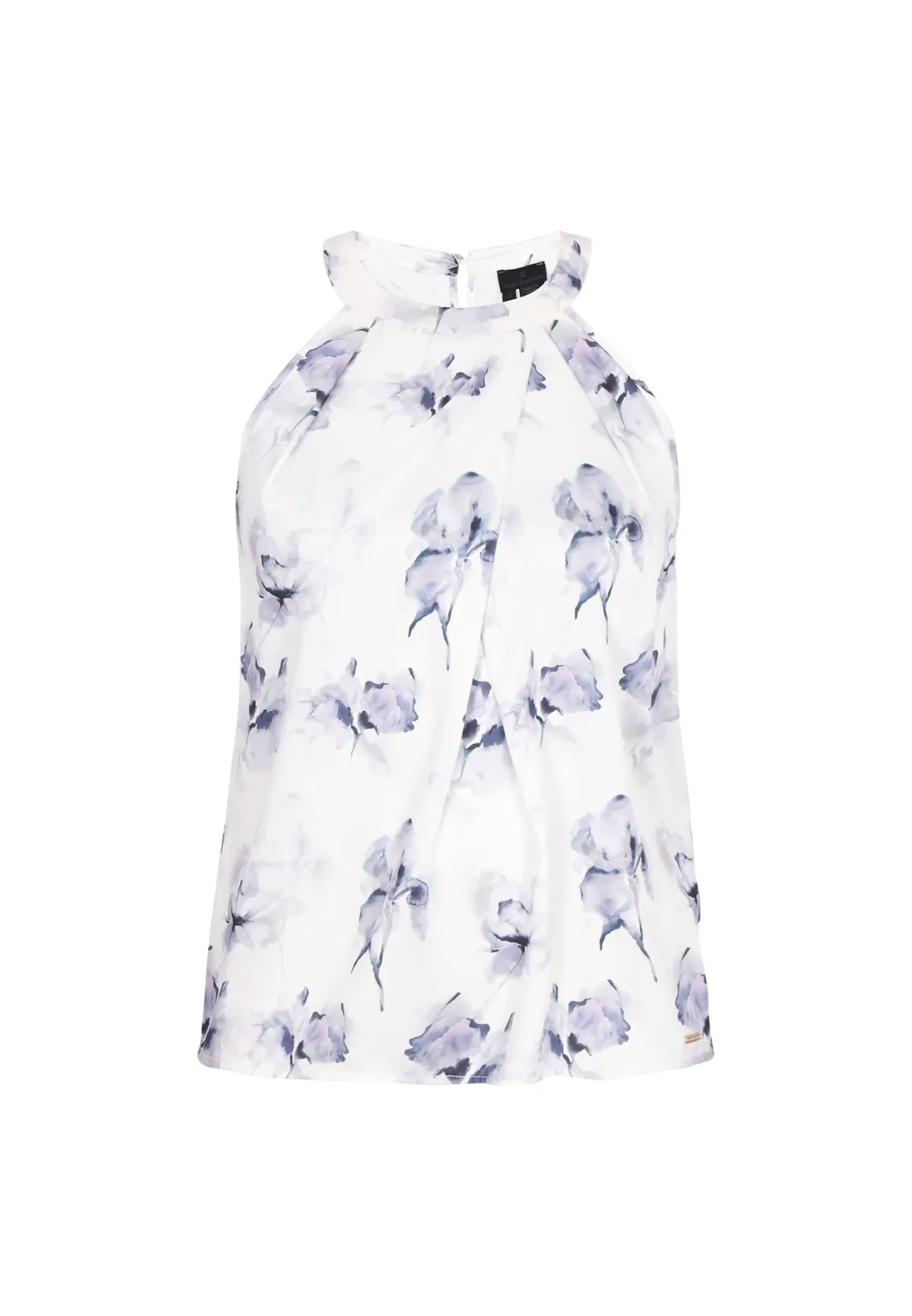 Blouse type: Blouseshirt; Design: Gevoerde zoom/rand, Keyholesluiting; Type sluiting: Knoopsluiting; Materiaal: Satijn; Motief: Bloemenprint; Kraag: Zonder kraag; Details: Cut-outs, Plooien; Extra's: All-over patroon, Label patch/label flag; Pasvorm: Normale pasvorm; Armlengte: Mouwloos; Lengte: Normale lengte