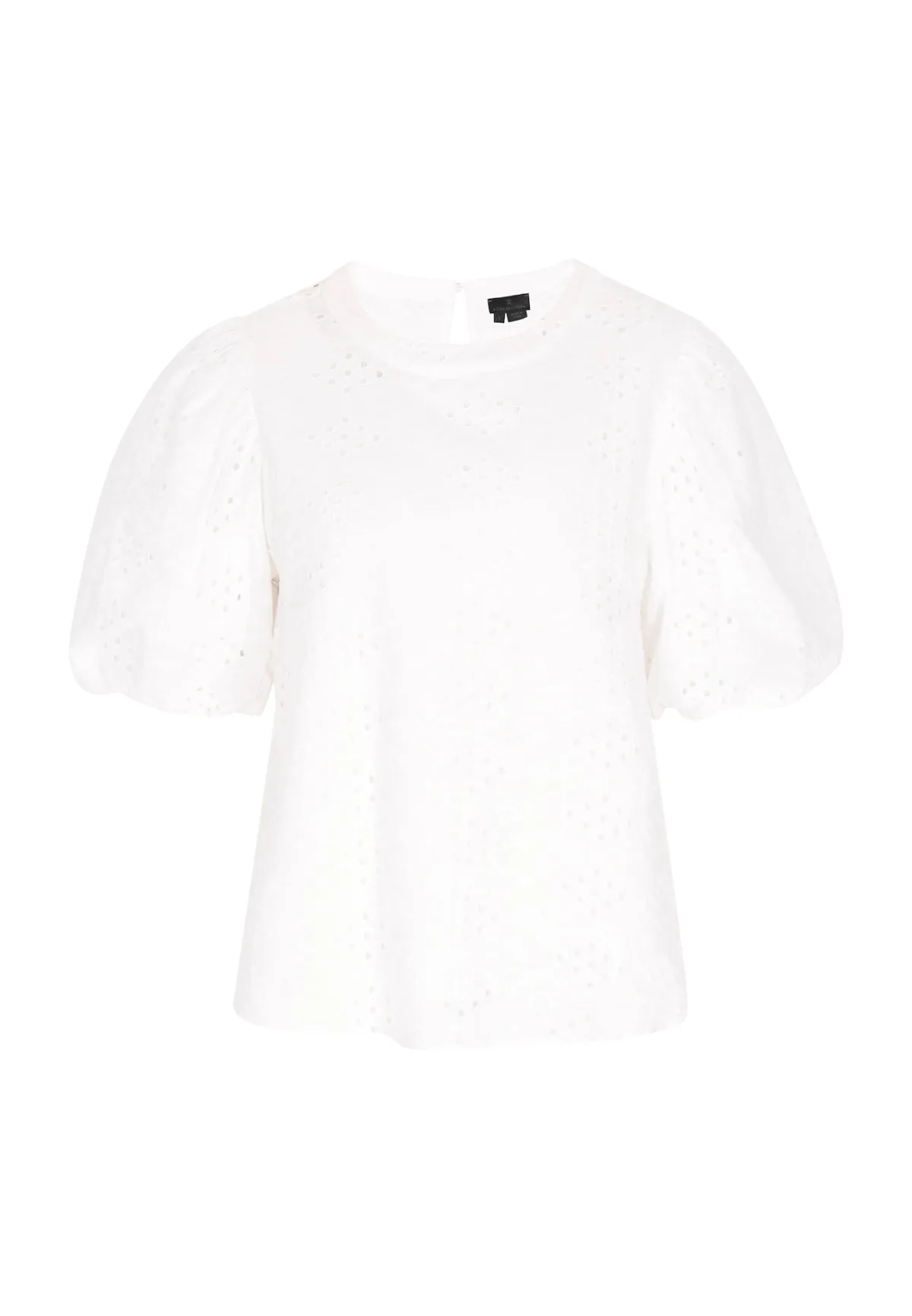 Blouse type: Blouseshirt; Design: Pofmouwen; Type sluiting: Knoopsluiting; Materiaal: Katoen; Motief: Effen; Kraag: Zonder kraag; Details: Borduursels, Mesh; Extra's: Op staal naden; Pasvorm: Normale pasvorm; Armlengte: Halve mouw; Lengte: Normale lengte