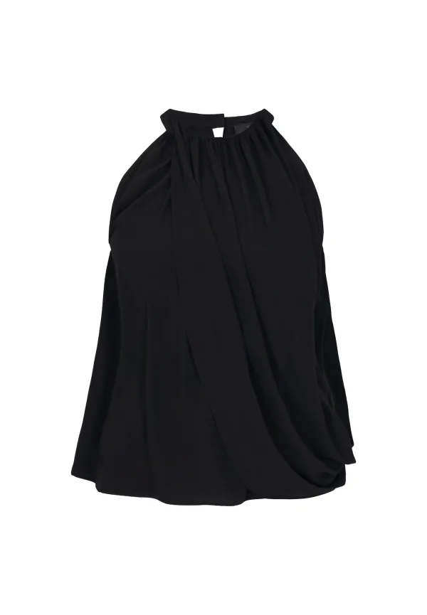 Blouse type: Wijde blouse; Design: Keyholesluiting; Type sluiting: Knoopsluiting; Motief: Effen; Kraag: Zonder kraag; Details: Plooien, Gedrapeerd; Extra's: Op staal naden, Gladde stof; Pasvorm: Normale pasvorm; Armlengte: Mouwloos; Lengte: Normale lengte