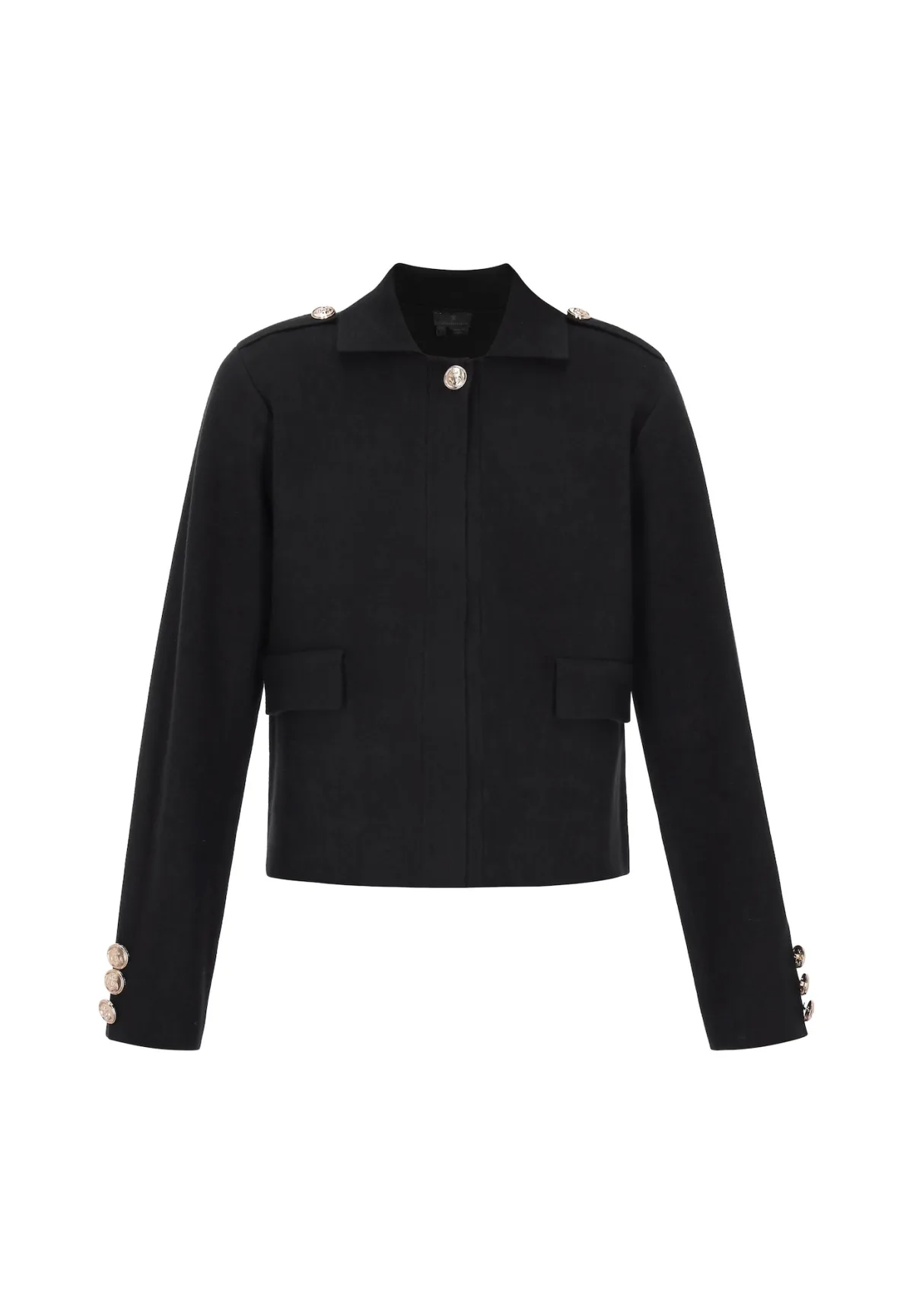 Design: Opzet-/flapzak, Mouwen met knopen; Type sluiting: Knoopsluiting; Materiaal: Knitwear; Motief: Effen; Extra's: Pailletten, Voelt zacht aan; Pasvorm: Normale pasvorm; Armlengte: Lange mouw; Lengte: Korte pasvorm