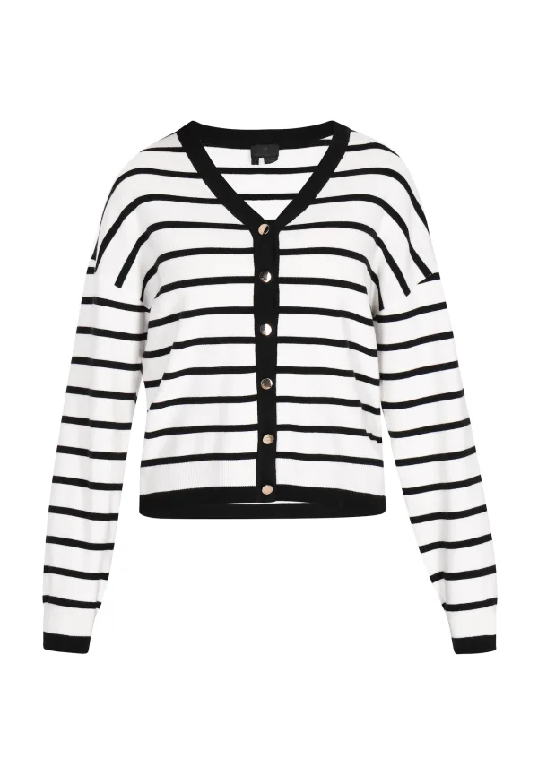Design: Geribbelde kraag, Geribd ceintuurtje; Type sluiting: Knoopsluiting; Materiaal: Knitwear; Halstype: V-hals; Motief: Gestreept; Extra's: Fully fashioned; Pasvorm: Losse pasvorm; Armlengte: Lange mouw; Lengte: Normale lengte