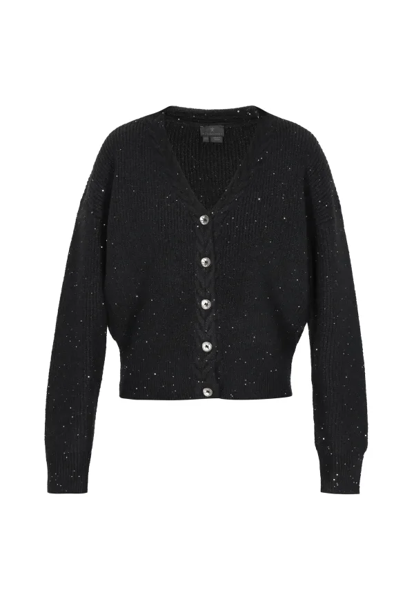 Design: Placket, Geribbelde kraag, Extra lange mouwen; Type sluiting: Knoopsluiting; Materiaal: Knitwear; Halstype: V-hals; Motief: Effen; Details: Pailletten; Extra's: Voelt zacht aan; Pasvorm: Normale pasvorm; Armlengte: Lange mouw; Lengte: Normale lengte