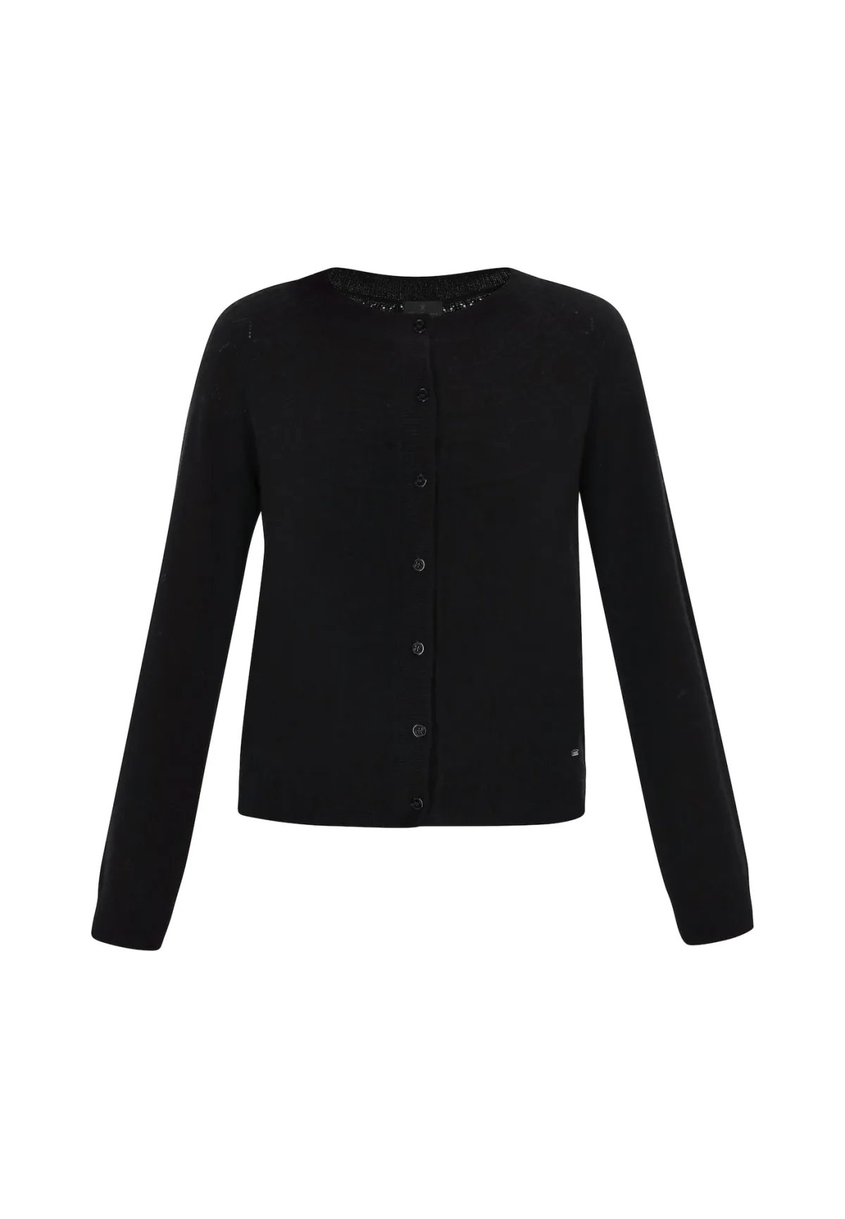 Design: Gevoerde zoom/rand, Knop placket; Type sluiting: Knoopsluiting; Materiaal: Knitwear; Halstype: Ronde hals; Motief: Effen; Details: Mesh; Extra’s: Op staal naden; Pasvorm: Normale pasvorm; Armlengte: Lange mouw; Lengte: Normale lengte