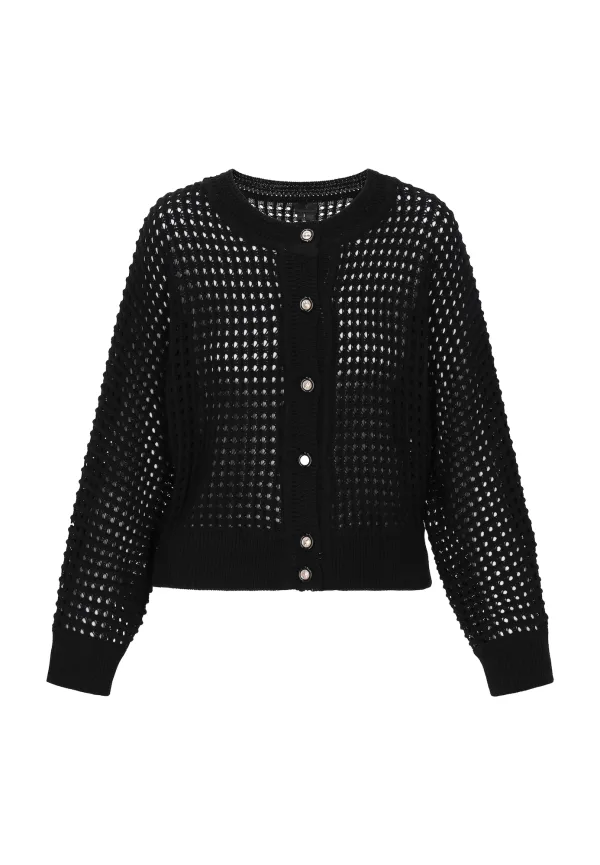 Design: Vleermuismouwen; Type sluiting: Knoopsluiting; Materiaal: Knitwear; Halstype: Ronde hals; Motief: Effen; Details: Mesh; Extra's: Op staal naden; Pasvorm: Losse pasvorm; Armlengte: Lange mouw; Lengte: Normale lengte