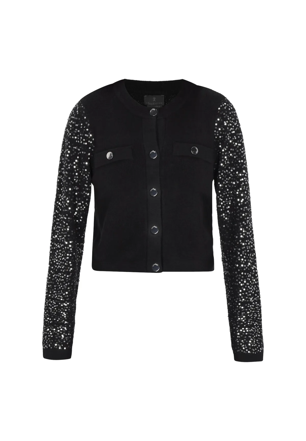 Design: Knop placket, Borstzak; Type sluiting: Knoopsluiting; Materiaal: Knitwear; Halstype: Ronde hals; Motief: Effen; Details: Pailletten; Extra's: Glitterend; Pasvorm: Normale pasvorm; Armlengte: Lange mouw; Lengte: Normale lengte