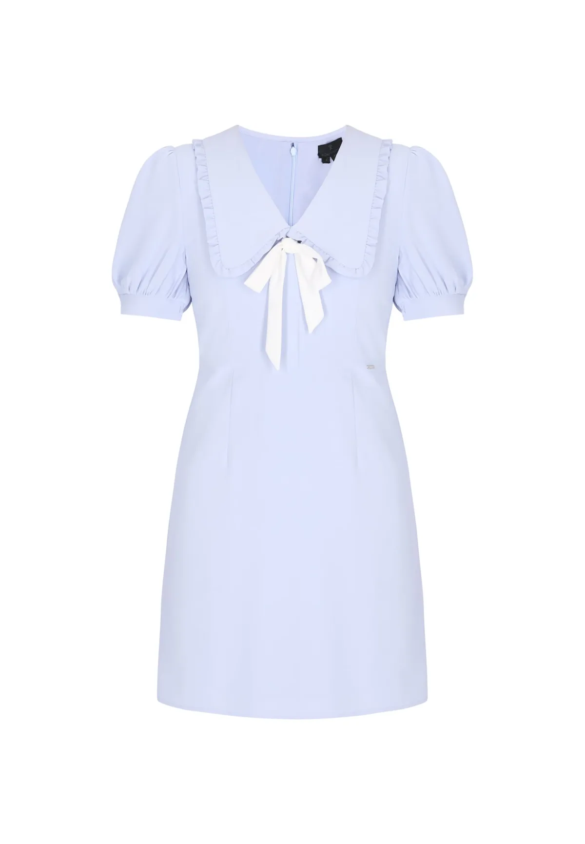 Design: Gevoerde zoom/rand, Pofmouwen; Type sluiting: Ritssluiting; Halstype: Peter Pan kraag; Motief: Effen; Details: Ruches, Gedrapeerd; Extra's: Applicaties, Op staal naden; Lengte: Kort/mini; Snit: Getailleerd; Pasvorm: Normale pasvorm; Armlengte: Kwartmouw