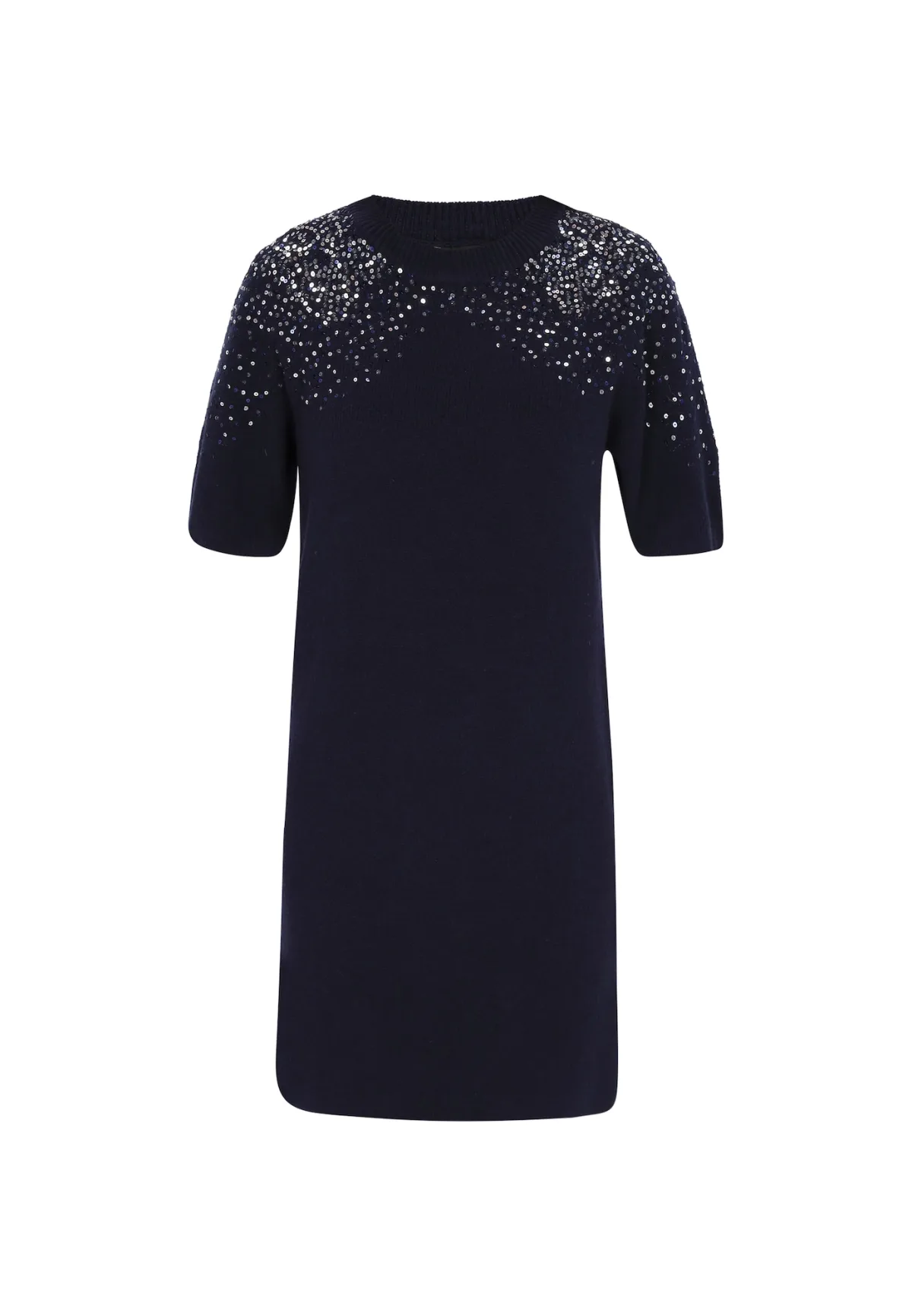 Design: Geribbelde kraag, Rechte zoom; Type sluiting: Slip; Halstype: Ronde hals; Details: Pailletten; Extra's: Applicaties, Met textuur; Lengte: Kort/mini; Pasvorm: Normale pasvorm; Armlengte: Kwartmouw