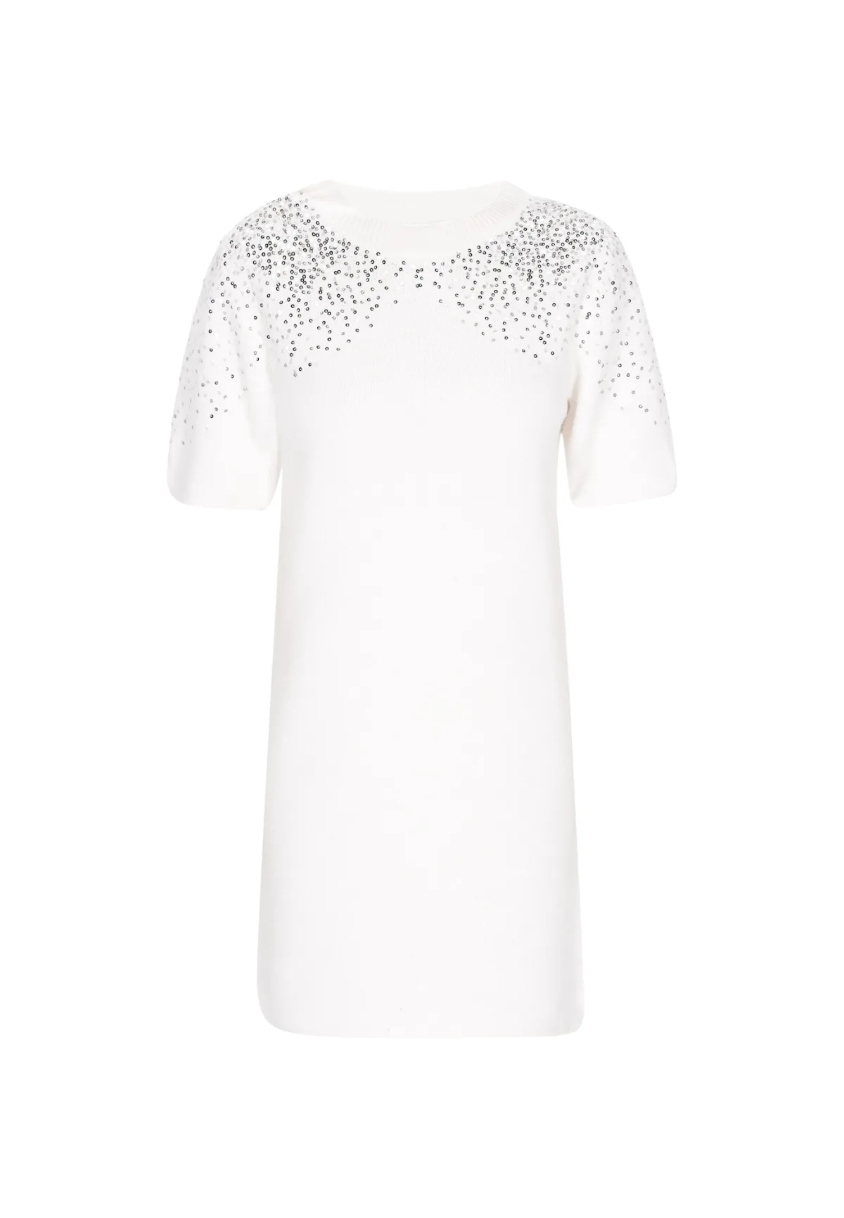 Design: Geribbelde kraag, Pofmouwen; Type sluiting: Slip; Halstype: Ronde hals; Motief: Effen; Details: Pailletten; Extra's: Applicaties; Lengte: Kort/mini; Pasvorm: Normale pasvorm; Armlengte: Kwartmouw