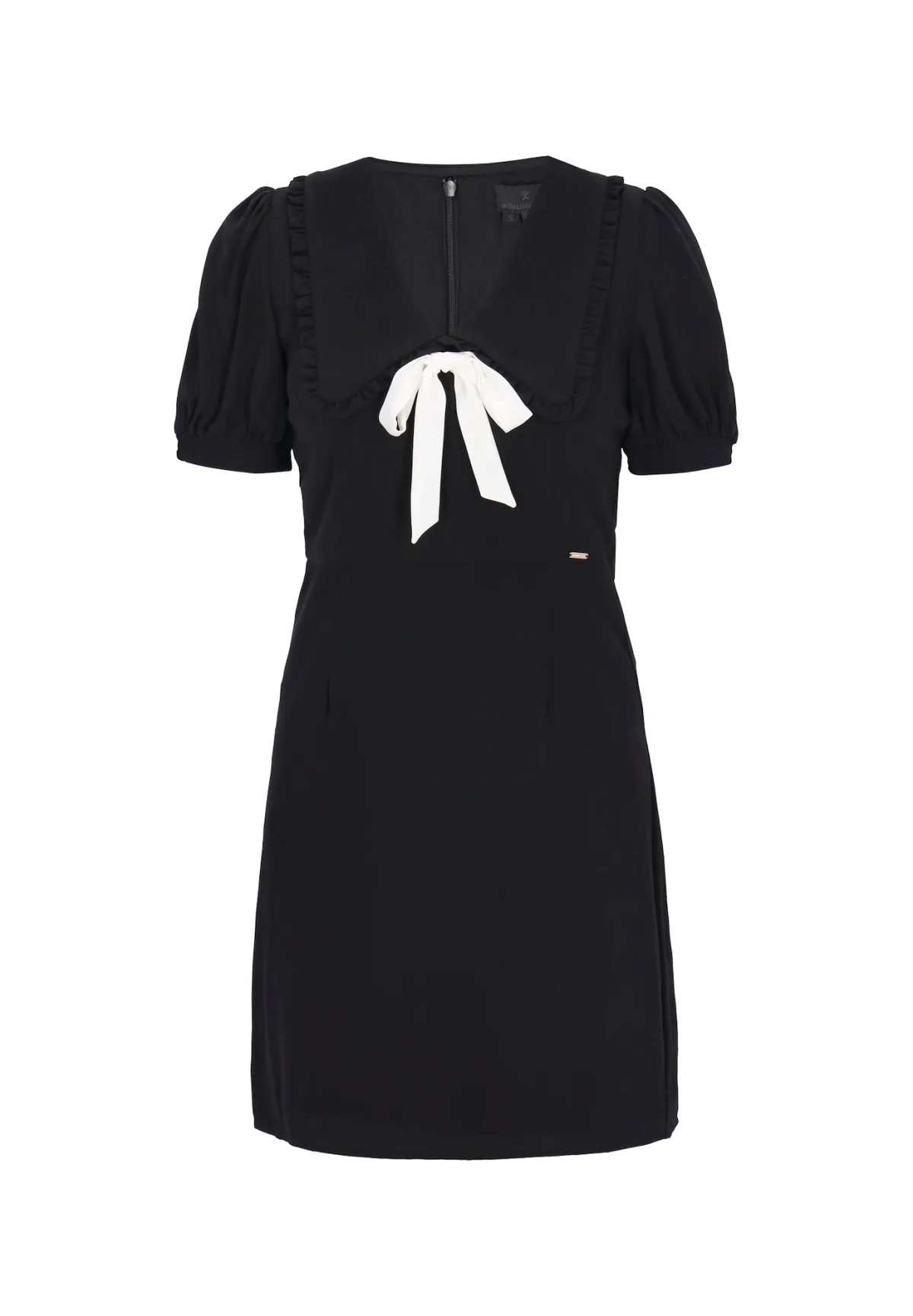 Design: Pofmouwen; Type sluiting: Ritssluiting; Halstype: Peter Pan kraag; Motief: Effen; Details: Ruches, Gedrapeerd; Extra's: Gladde stof; Lengte: Kort/mini; Snit: Getailleerd; Pasvorm: Normale pasvorm; Armlengte: Kwartmouw