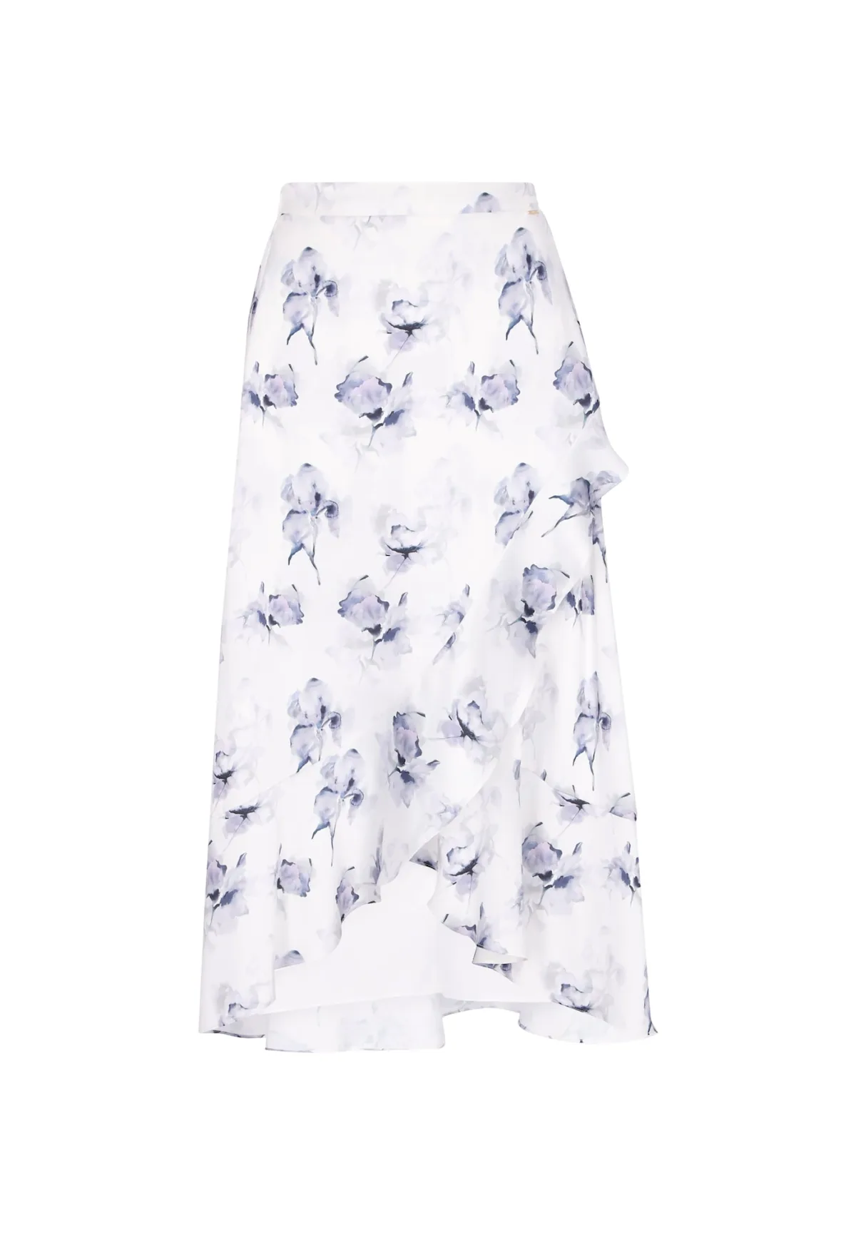 Design: Asymmetrische zoom, Elastische taille/zoom; Type sluiting: Slip; Materiaal: Satijn; Motief: Bloemenprint; Rokvorm: Wickelrock; Details: Volant, Gedrapeerd, Wikkel design; Extra's: All-over patroon; Lengte: Lang/maxi; Pasvorm: Normale pasvorm; Taillehoogte: High waist