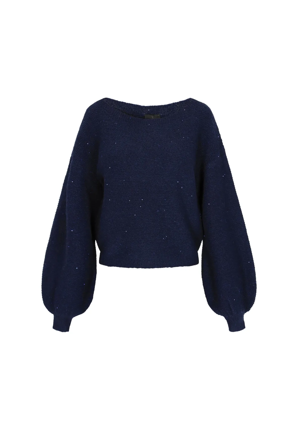 Design: Pofmouwen, Geribd ceintuurtje; Type sluiting: Slip; Materiaal: Knitwear; Halstype: Boothals; Motief: Effen; Details: Pailletten; Extra's: Label patch/label flag, Op staal naden; Pasvorm: Normale pasvorm; Armlengte: Lange mouw; Lengte: Normale lengte