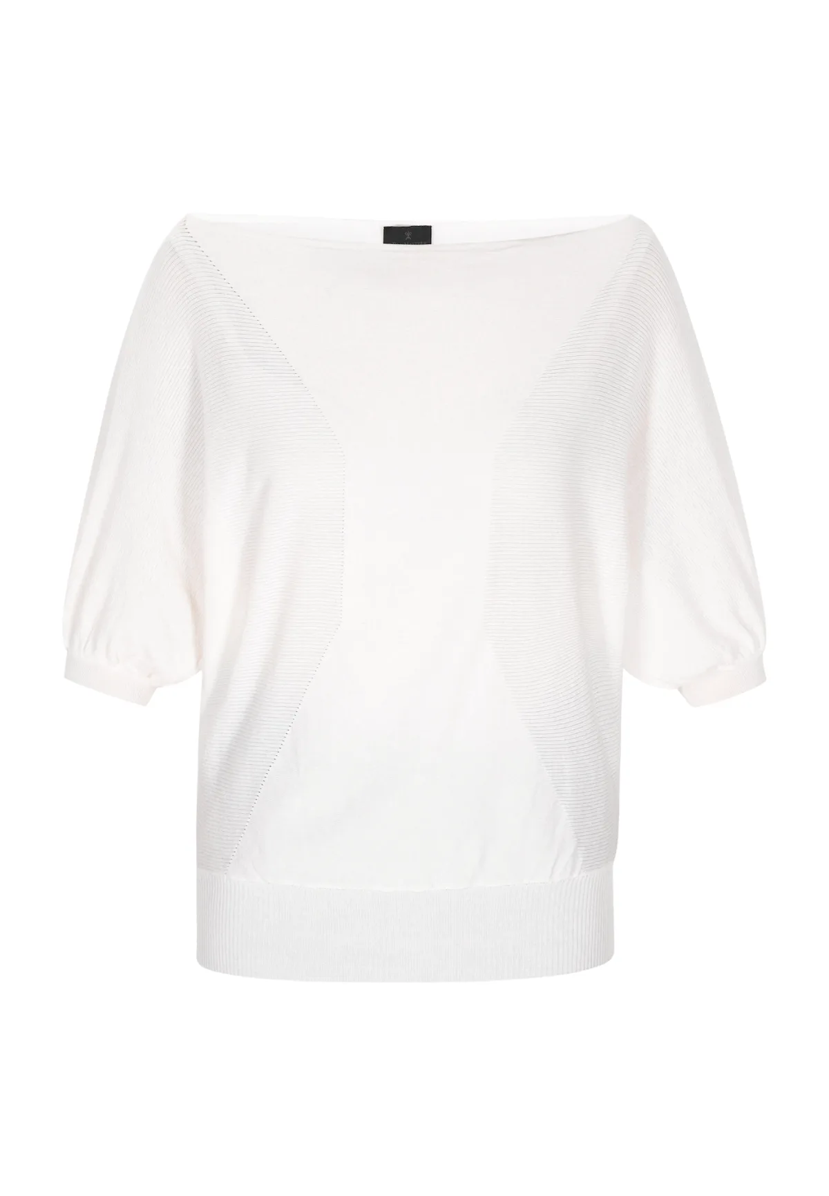 Design: Pofmouwen, Geribd ceintuurtje; Materiaal: Knitwear; Halstype: Boothals; Motief: Effen; Extra's: Fully fashioned, Voelt zacht aan; Pasvorm: Losse pasvorm; Armlengte: Driekwart mouw; Lengte: Normale lengte