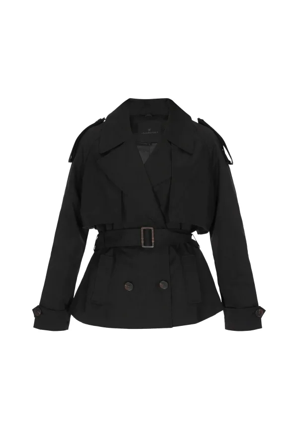 Type mantel: Trenchcoat; Design: Raglanmouwen, Zakken aan de zijkant; Type sluiting: Knoopsluiting; Voering: Licht gevoerd; Motief: Effen; Extra's: Vaste grip, Schoudervulling; Pasvorm: Normale pasvorm; Lengte: Korte pasvorm