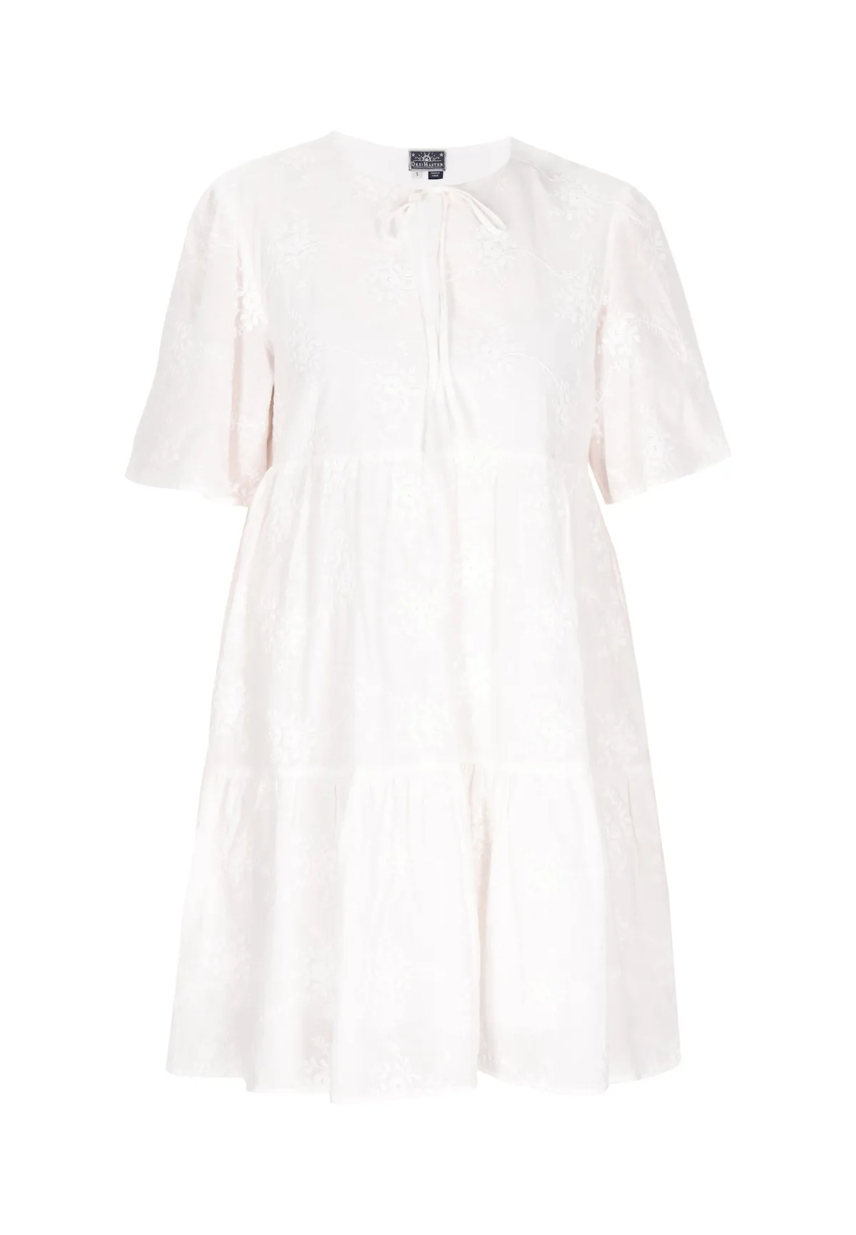 Design: Gevoerde zoom/rand; Materiaal: Katoen; Halstype: Uitgesneden hals; Motief: Bloemenprint; Kraag: Zonder kraag; Details: Borduursels, Volant, Gedrapeerd; Extra's: Voelt zacht aan; Lengte: Knielengte; Snit: Uitlopend; Pasvorm: Losse pasvorm; Armlengte: Kwartmouw