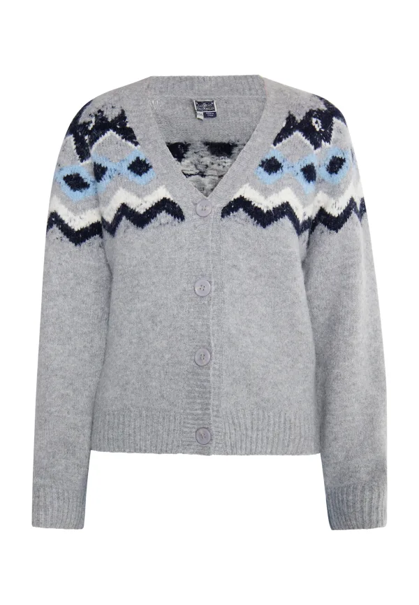 Design: Knop placket; Type sluiting: Knoopsluiting; Halstype: V-hals; Motief: Winterse print; Extra’s: Fully fashioned; Pasvorm: Losse pasvorm; Armlengte: Lange mouw; Lengte: Normale lengte