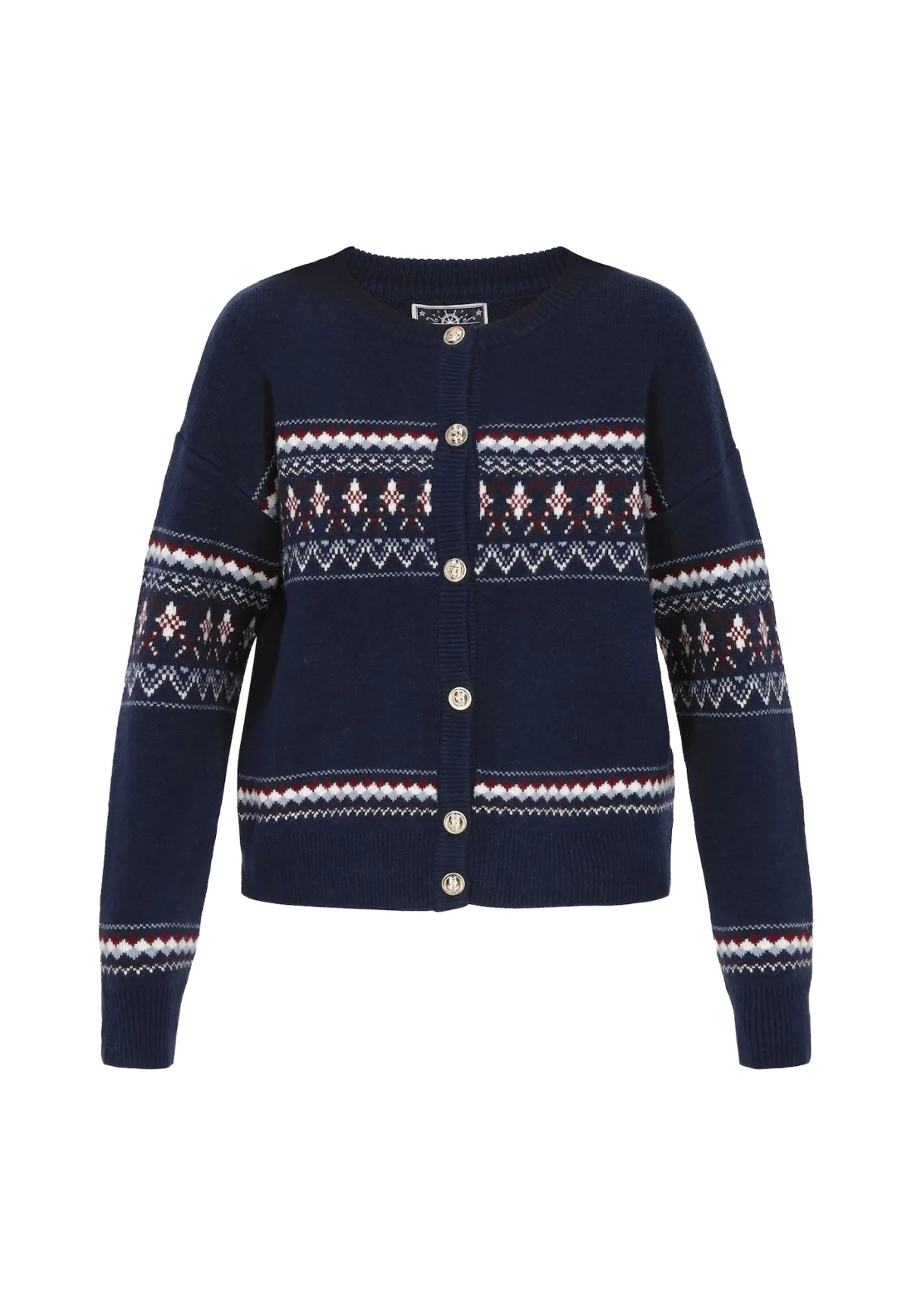 Design: Placket; Type sluiting: Knoopsluiting; Materiaal: Knitwear; Halstype: Ronde hals; Motief: Winterse print; Extra's: All-over patroon, Burnout effect; Pasvorm: Normale pasvorm; Armlengte: Lange mouw; Lengte: Normale lengte