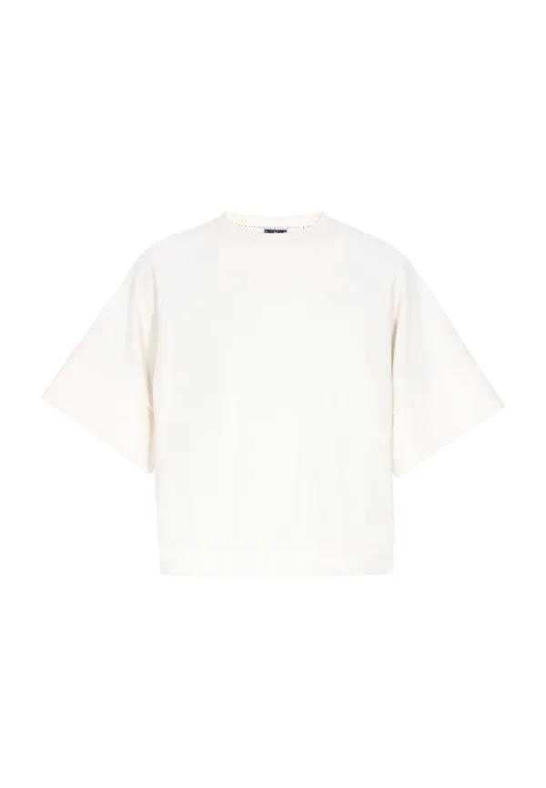 Design: Geribbelde kraag; Materiaal: Sweatstof; Halstype: Ronde hals; Motief: Effen; Details: Borduursels; Extra's: Op staal naden, Voelt zacht aan; Pasvorm: Losse pasvorm; Armlengte: Halve mouw; Lengte: Normale lengte