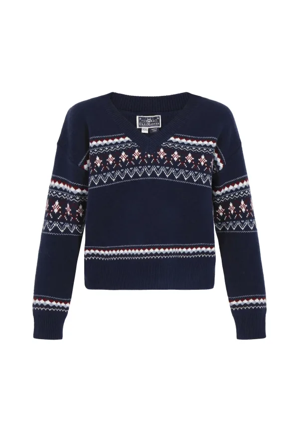 Design: Geribbelde kraag, Geribd ceintuurtje, Overcut schouder; Materiaal: Knitwear; Halstype: V-hals; Motief: Winterse print; Extra's: Label plaatje, Voelt zacht aan; Pasvorm: Losse pasvorm; Armlengte: Lange mouw; Lengte: Normale lengte