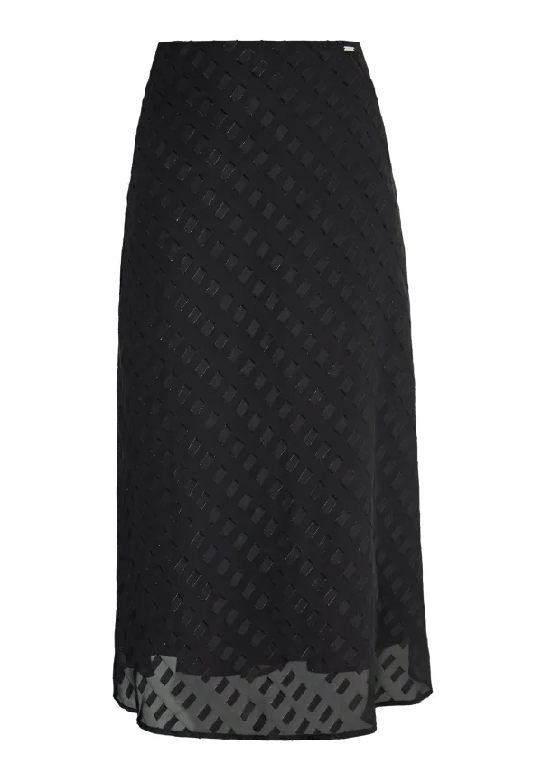Deze driemaster midi-rok is een klassieker. De transparante stof en het prachtige patroon maken het tot iets heel bijzonders. Met de verborgen ritssluiting aan de achterkant past hij perfect. Een geweldige aanvulling op elke garderobe! midirok