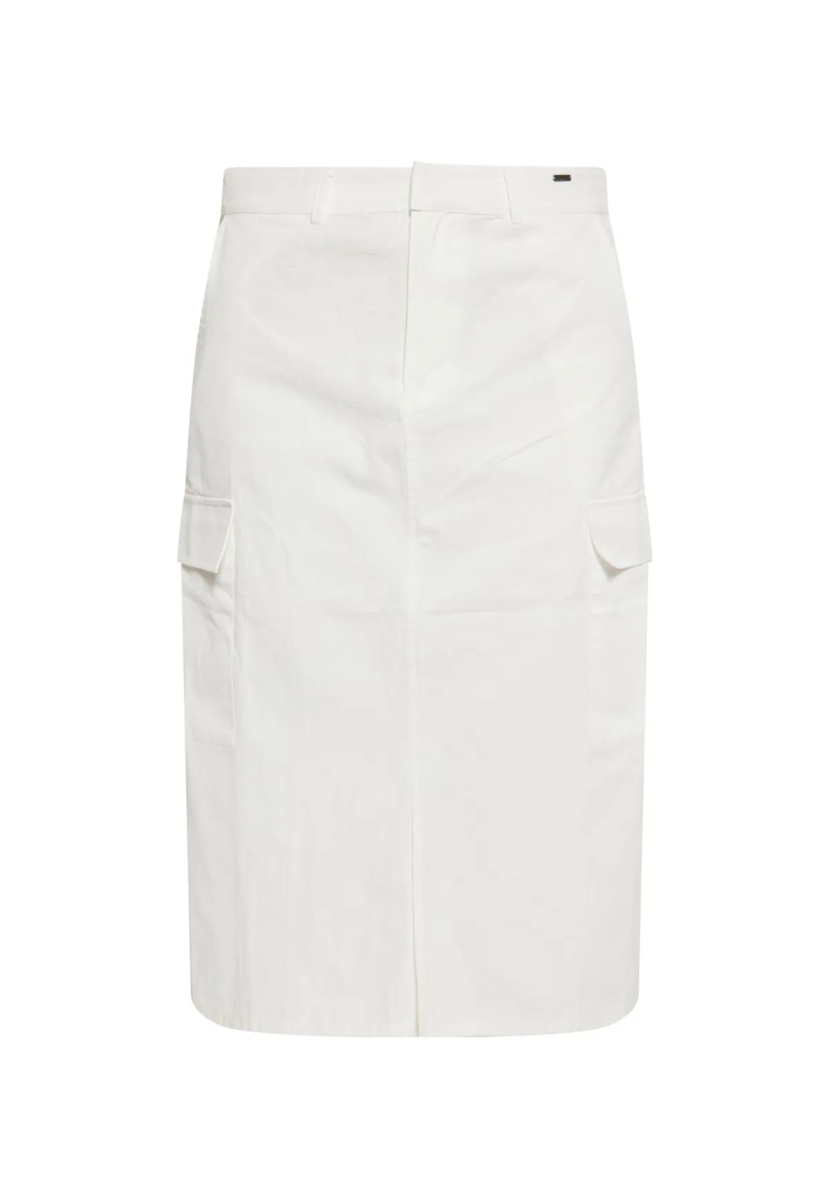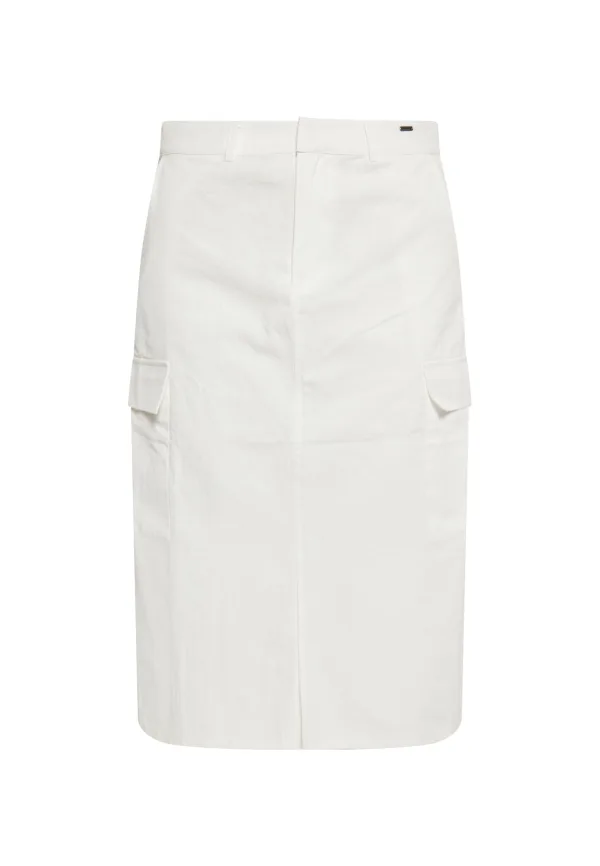 Accentueer je garderobe met deze katoenen rok met een split aan de achterkant voor bewegingsvrijheid. Er zijn twee functionele opgestikte cargozakken aan de voorkant, die functionaliteit toevoegen aan het minimalistische ontwerp. De rok zal een geweldig onderdeel zijn van een zomerse styling. Rock