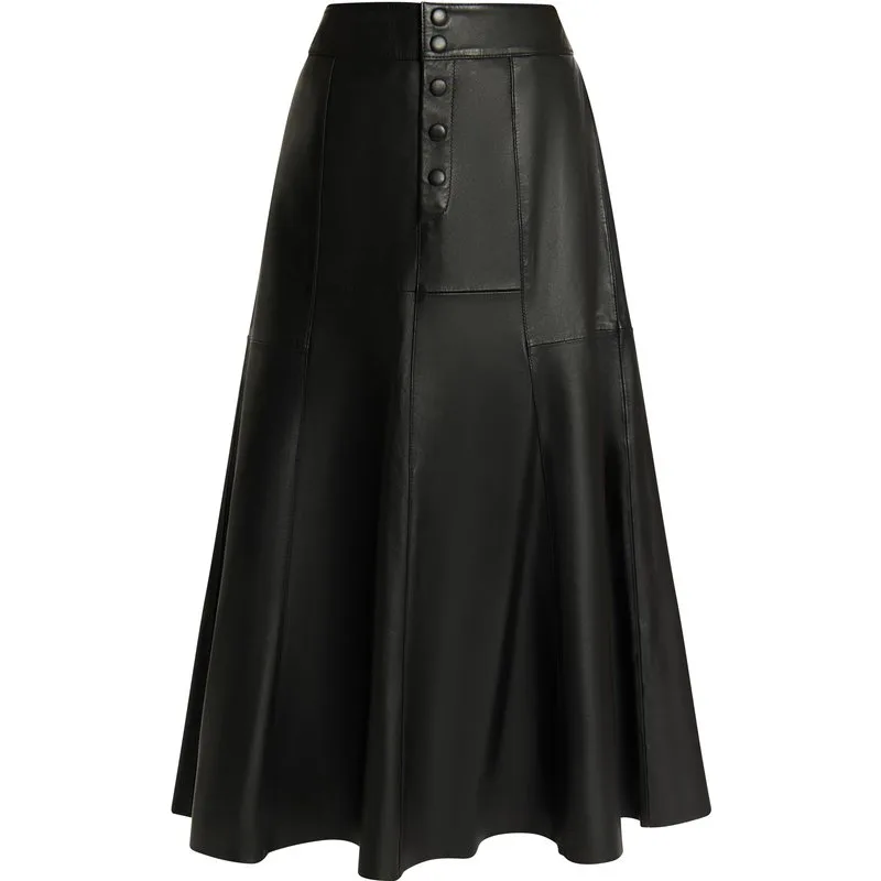 Deze veelzijdige midirok van DreiMaster Vintage is gemaakt van boterzacht lamsleer en overtuigt door een matte afwerking met zichtbare deelnaden. Met zijn smalle vorm, die overgaat in een A-lijn, onderstreept hij het vrouwelijke silhouet. Wij combineren het met een blouse of een dikke trui en dikke laarzen. Rock