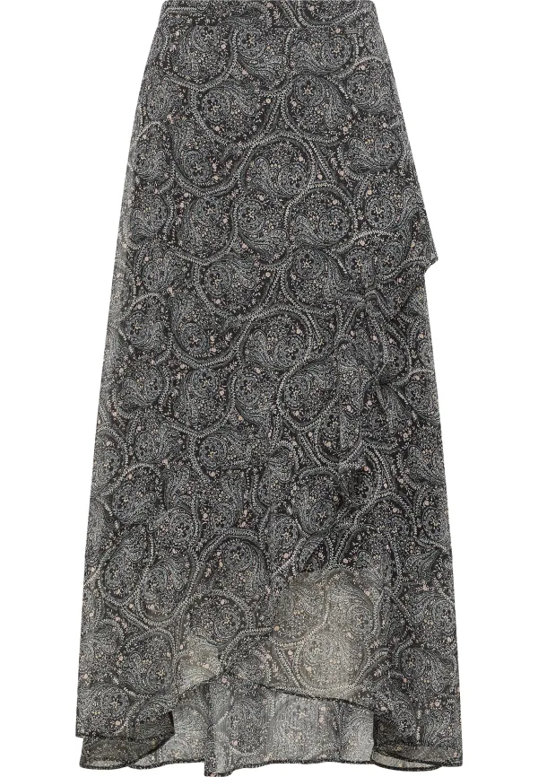Deze maxirok van DreiMaster Vintage is vrouwelijk en veelzijdig tegelijk. Het lange model van zachte, vloeiende stof is aangenaam ongecompliceerd, voorzien van een boho-bloemmotief en een horizontale ruche die de rok een spannende twist geeft. Een elastische taille en volledige voering zorgen voor meer comfort. In combinatie met laarzen ontstaat een trendy stijlbreuk, maar de zomerse look is ook perfect met sandalen. Rock