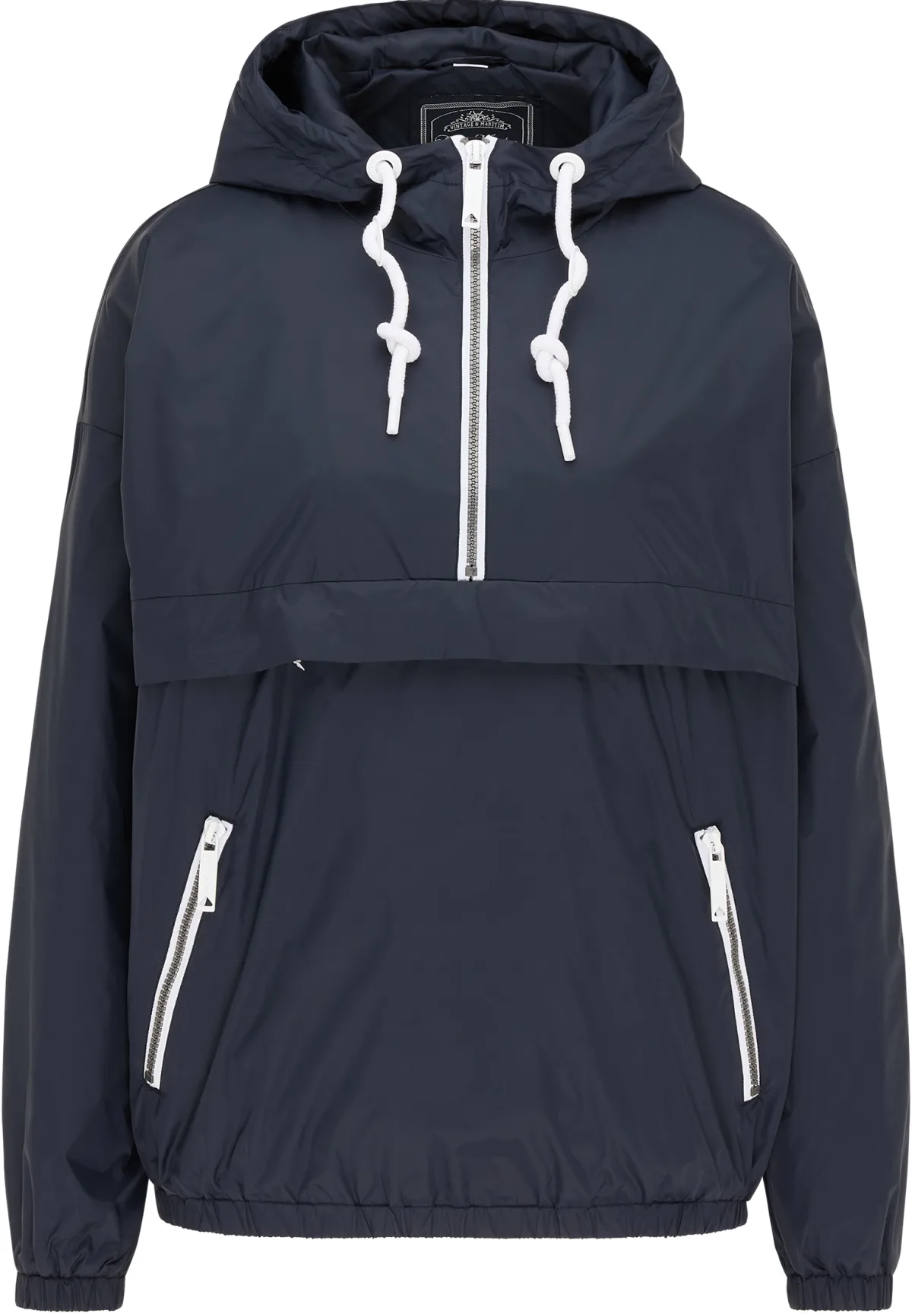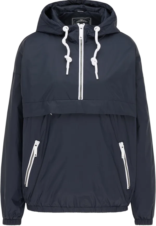 Geen voering/geen voering, geen vulling Met deze slip-on jas biedt DreiMaster Maritim een geweldig alternatief als het gaat om een overgangsjas. Dankzij het lichte materiaal past de jas in elke zak en is hij altijd bij de hand. Een halve rits vooraan en een rits opzij maken het aantrekken gemakkelijk. Een grote capuchon met trekkoord en koord en een elastische zoom ronden het model af, evenals de borstzak en de twee zijzakken met ritssluiting. Slip-on jas