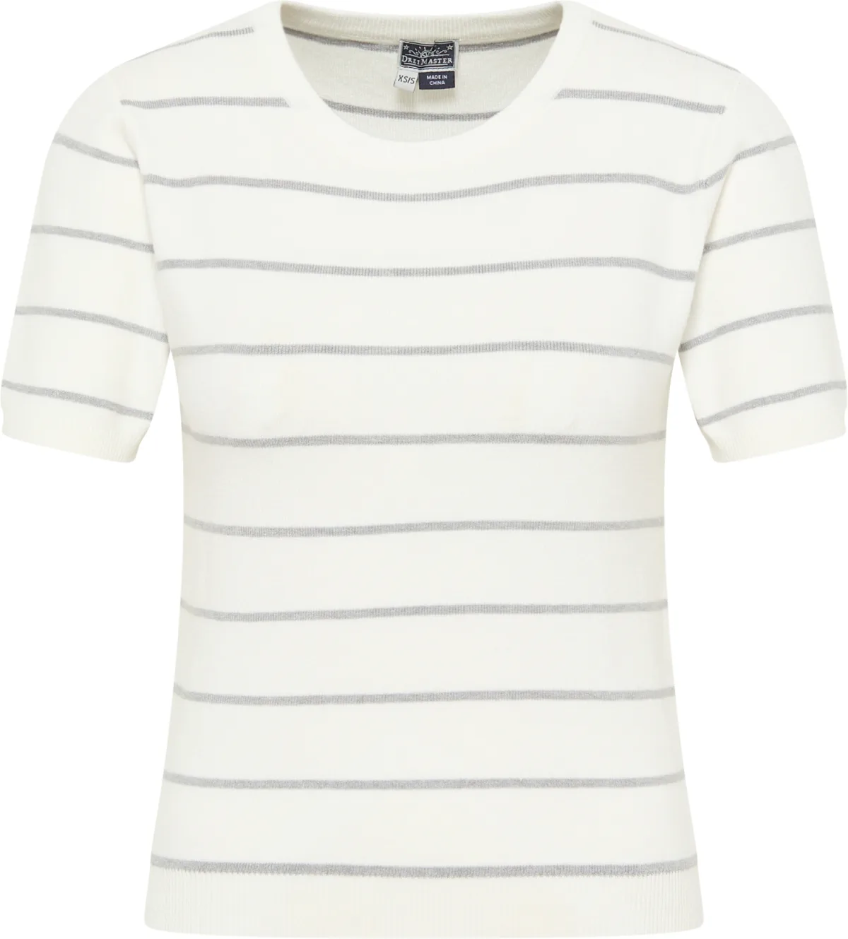 Dreimaster Trui met korte mouwen bridgeport Dames Wol wit grijs gemêleerd