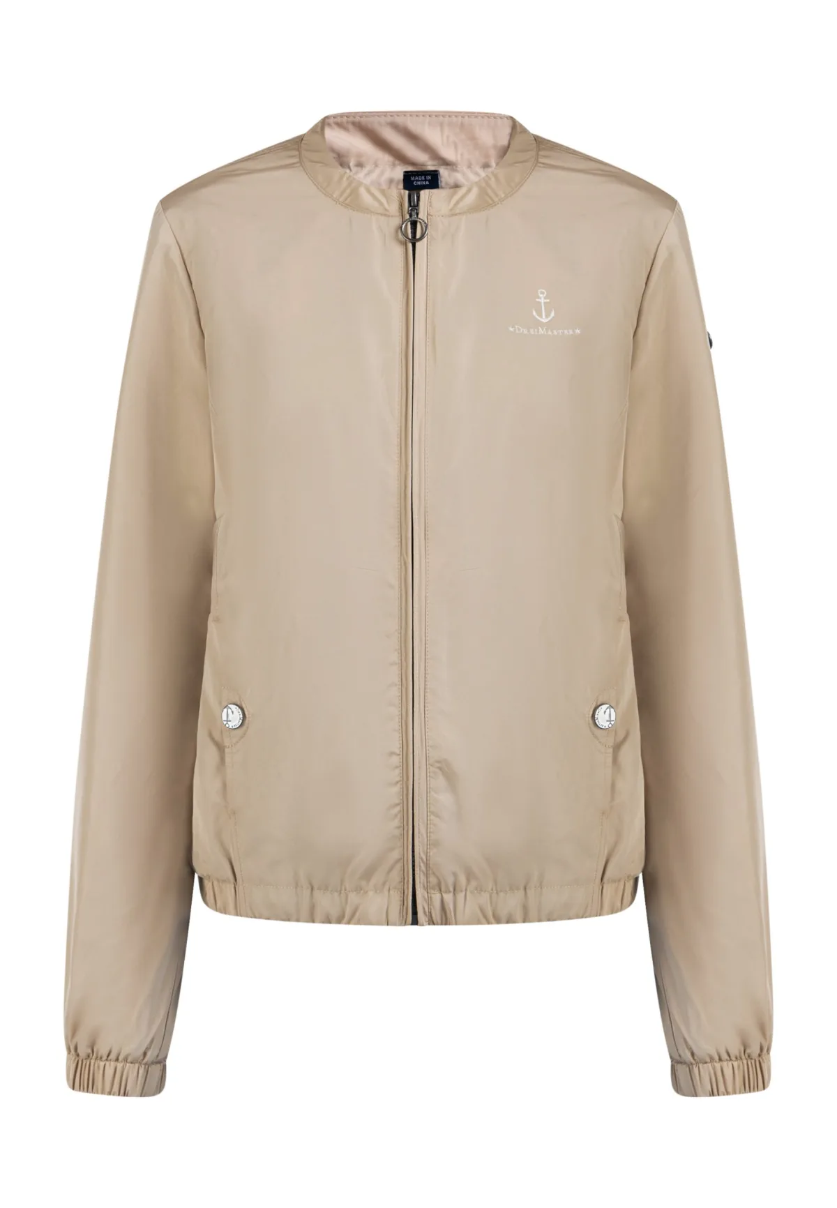 Geen vulling, coating: 100% thermisch polyurethaan Deze stijlvolle blouson van DreiMaster Maritim is gemaakt van een gerecycled en licht glanzend materiaal. De klassieke snit met ronde halslijn en elastische manchetten beschermt tegen wind en de zijzakken met logo-drukknopen en ankermotief geven de jas de typische maritieme look. overgangsjasje