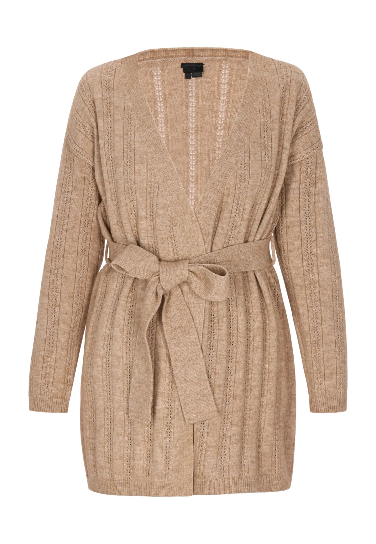 Deze stijlvolle en veelzijdige toevoeging aan je garderobe heeft een gestructureerd gebreid patroon met een V-hals en een open voorkant. Met de bijpassende riem kun je dit gezellige kledingstuk vastmaken - perfect om warmte en comfort toe te voegen aan je dagelijkse look. Geribbelde textuur langs de zoom, manchetten en randen aan de voorkant voegen extra structuur toe aan dit casual en toch chique kledingstuk. Vest