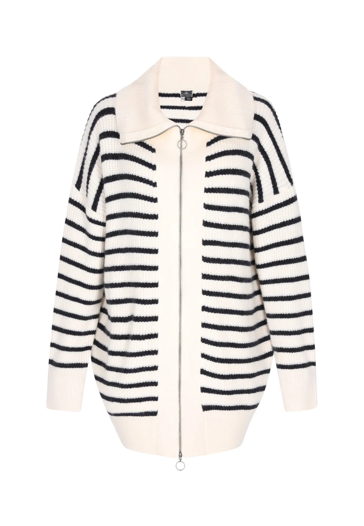 Dit vest heeft een opvallend horizontaal streeppatroon en wordt stijlvol aangevuld door een geribde kraag, zoom en manchetten. De doorlopende ritssluiting met ronde hanger geeft het geheel een moderne touch. Het dikke gebreide materiaal houdt je aangenaam warm, terwijl de relaxte snit en de lange mouwen met zichtbare schoudernaden voor extra accenten zorgen. Vest
