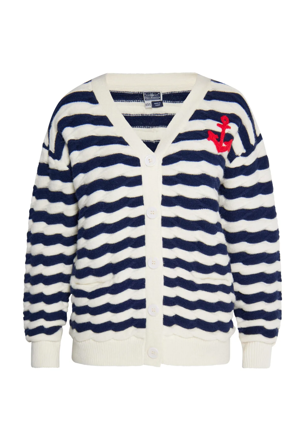 Ahoi! Het vest van DreiMaster Maritim is niet alleen een modieus accessoire voor zeilers, maar ook voor landrotten. Het golvende structuurbreisel en het aanwezige, geborduurde anker op de borst doen de merknaam eer aan. De zachte garenmix met V-hals en knoopsluiting complementeert het model. Vest