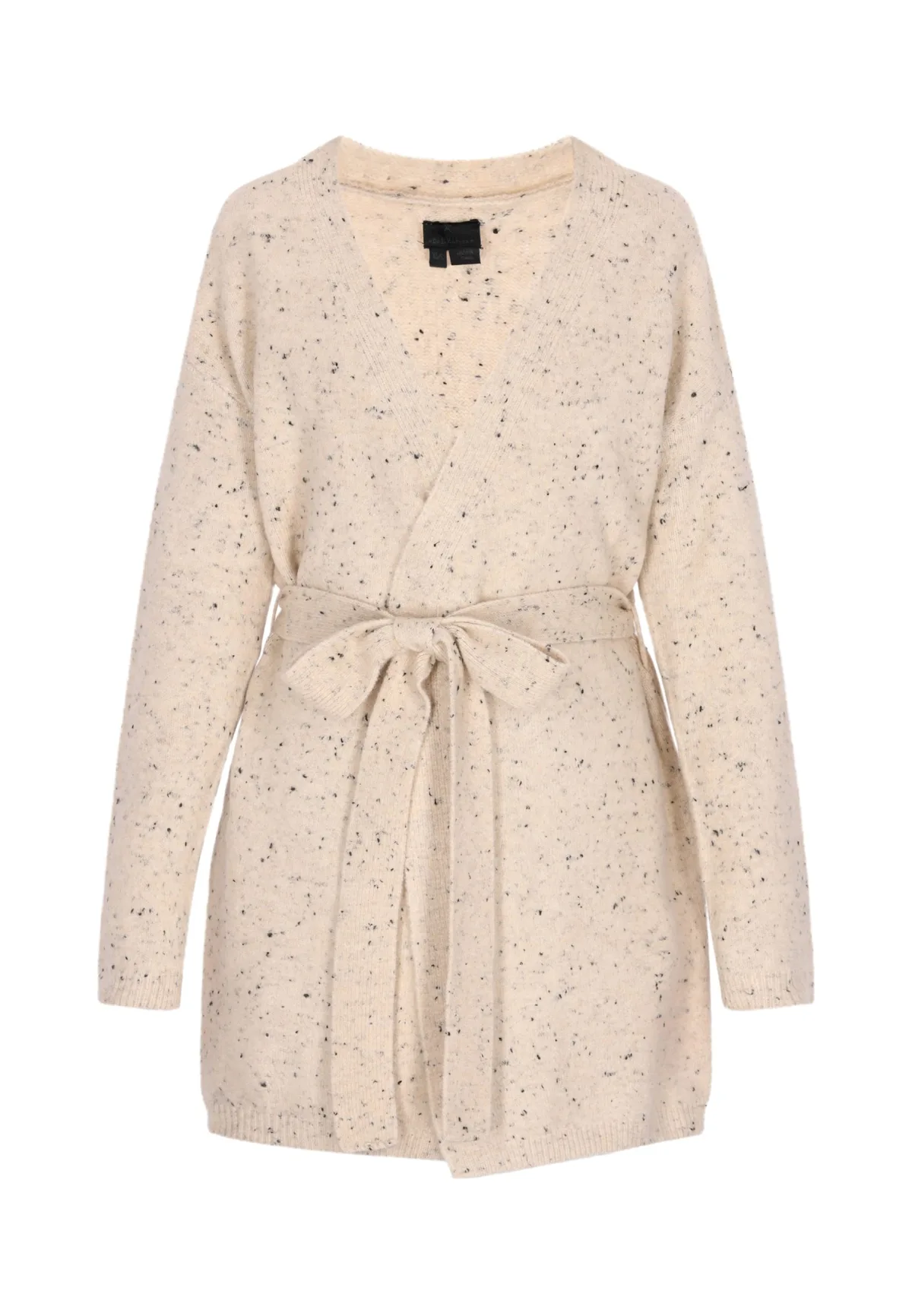 Geef je garderobe een nieuw leven met dit stijlvolle vest met lange mouwen. De gestructureerde stof maakt indruk met kleine, gelijkmatig verdeelde spikkels en geeft het een uniek tintje. Een diepe V-hals en het overslagfront met strikceintuur benadrukken de taille flatterend. De rechte zoom valt tot halverwege de dij en biedt zowel comfort als warmte in dit ontspannen silhouet - perfect voor koelere dagen. Vest