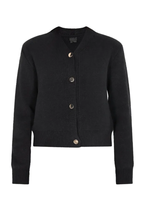 Dit vest heeft een intrigerend patroonontwerp met geribde details bij de halslijn, manchetten en zoom. De knopenstrook over de gehele lengte geeft het geheel een elegante touch. Met lange mouwen en een cropped lengte is dit vest zowel stijlvol als gezellig. Het consistente, zich herhalende motief voegt visueel belang toe aan de dikke, gestructureerde stof - ideaal om stijlvol warm te blijven. Vest