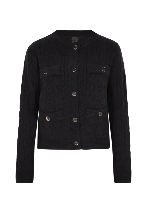 Wij presenteren je een liefdevol ontworpen, gestructureerd vest - perfect voor koelere dagen. De jas heeft een ronde hals en een knoopsluiting aan de voorkant waardoor hij gemakkelijk aan te trekken is. Met lange mouwen en geribde manchetten biedt het zowel stijl als comfort. De jas is afgerond met opgestikte zakken met knopen, zodat je de hele dag warm en stijlvol blijft. Vest