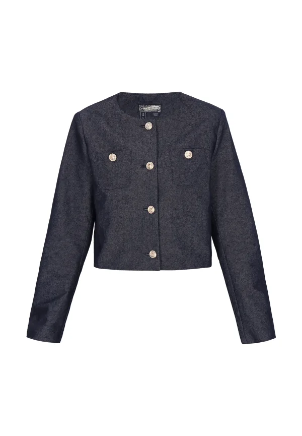 Design: Knop placket, Opgezette zakken, Borstzak; Type sluiting: Knoopsluiting; Voering: Licht gevoerd; Materiaal: Katoen; Motief: Mélange; Kraag: Zonder kraag; Extra's: Op staal naden; Pasvorm: Normale pasvorm; Armlengte: Lange mouw; Lengte: Korte pasvorm