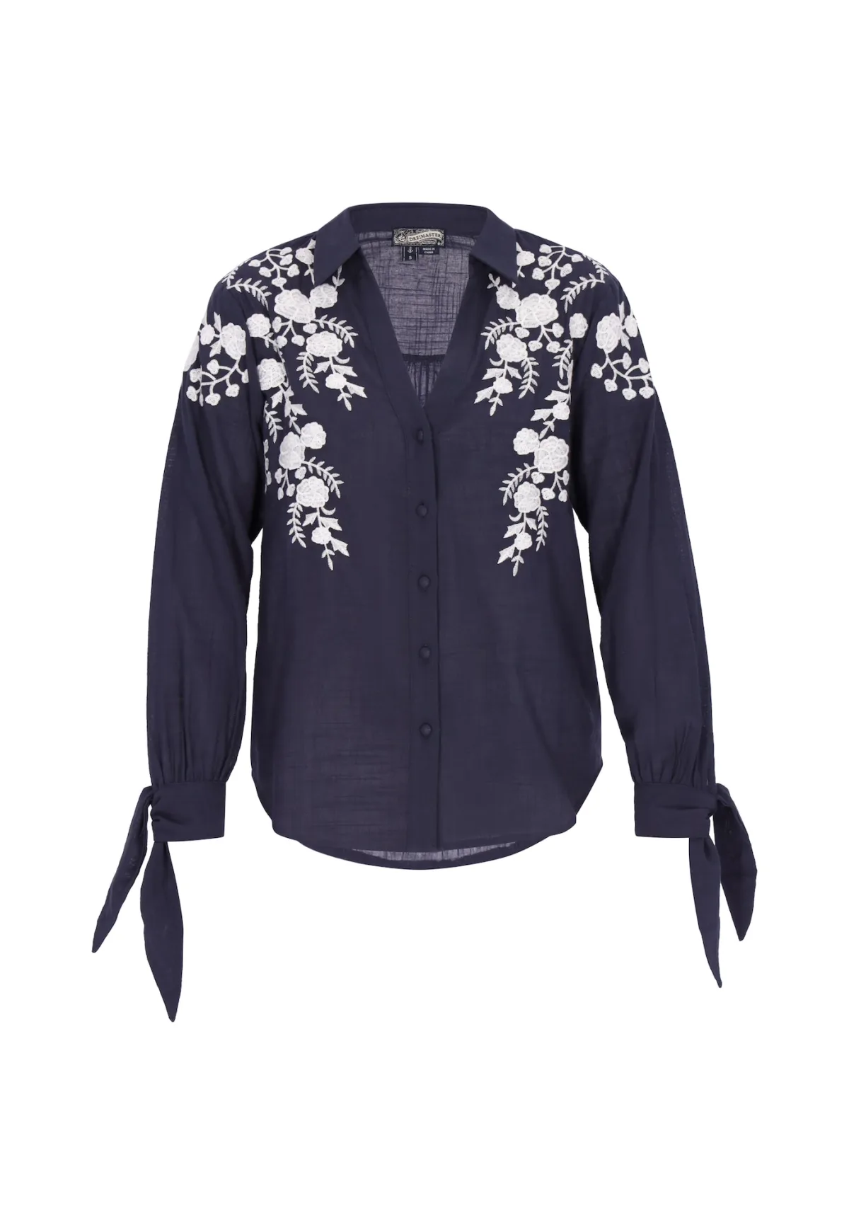 Blouse type: Klassieke blouse; Design: Knop placket, Ronde zoom; Type sluiting: Knoopsluiting; Materiaal: Katoen; Motief: Bloemenprint; Details: Borduursels; Pasvorm: Normale pasvorm; Armlengte: Lange mouw; Lengte: Normale lengte