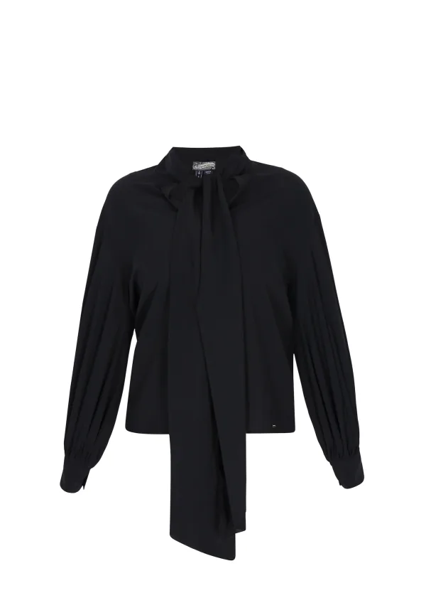 Blouse type: Klassieke blouse; Design: Gevoerde zoom/rand, Om te knopen/binden, Mouwen met knopen; Type sluiting: Knoopsluiting; Motief: Effen; Kraag: Strik; Details: Gedrapeerd; Extra's: Gladde stof, Voelt zacht aan; Pasvorm: Losse pasvorm; Armlengte: Lange mouw; Lengte: Normale lengte