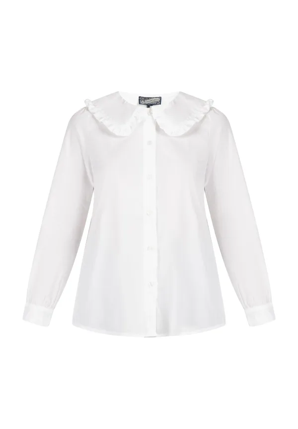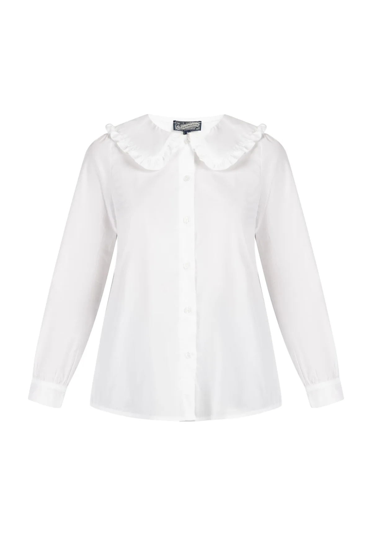 Blouse type: Klassieke blouse; Design: Gevoerde zoom/rand; Type sluiting: Knoopsluiting; Materiaal: Katoen; Motief: Effen; Kraag: Peter pan kraag; Details: Ruches, Plooien, Gedrapeerd; Extra's: Op staal naden, Voelt zacht aan; Pasvorm: Normale pasvorm; Armlengte: Lange mouw; Lengte: Normale lengte