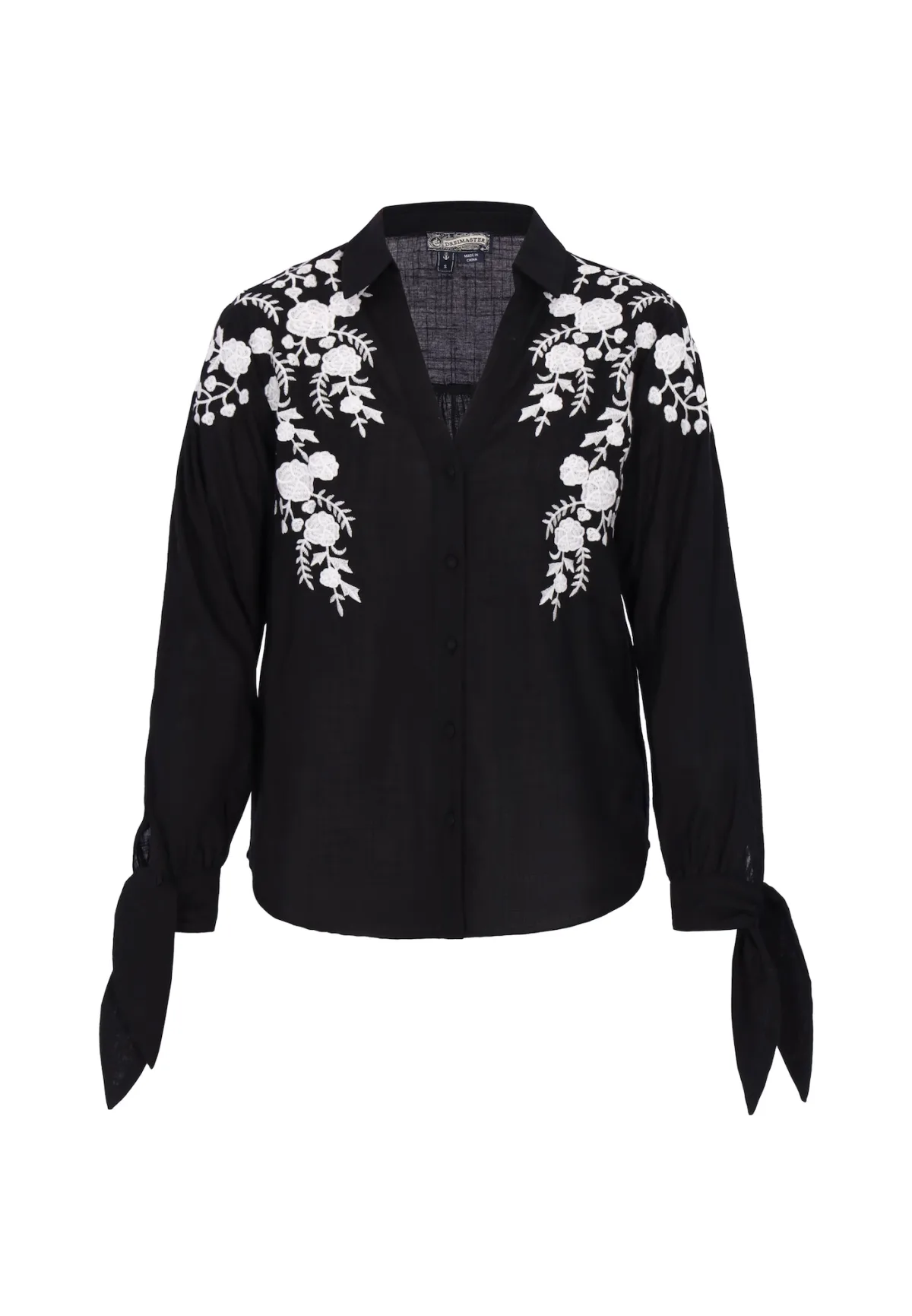 Blouse type: Klassieke blouse; Design: Knop placket, Om te knopen/binden; Type sluiting: Knoopsluiting; Materiaal: Katoen; Motief: Bloemenprint; Details: Borduursels; Extra's: Lichte stof, Vintage; Pasvorm: Normale pasvorm; Armlengte: Lange mouw; Lengte: Normale lengte