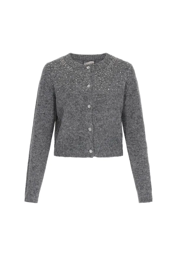 Design: Knop placket, Geribd ceintuurtje; Type sluiting: Knoopsluiting; Halstype: Ronde hals; Motief: Mélange; Details: Parels; Extra's: Fully fashioned, Label patch/label flag; Pasvorm: Normale pasvorm; Armlengte: Lange mouw; Lengte: Normale lengte