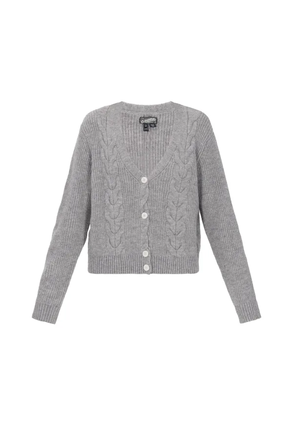 Design: Knop placket, Geribd ceintuurtje, Vlecht brei; Type sluiting: Knoopsluiting; Materiaal: Knitwear; Halstype: V-hals; Motief: Effen; Extra's: Voelt zacht aan; Pasvorm: Normale pasvorm; Armlengte: Lange mouw; Lengte: Normale lengte