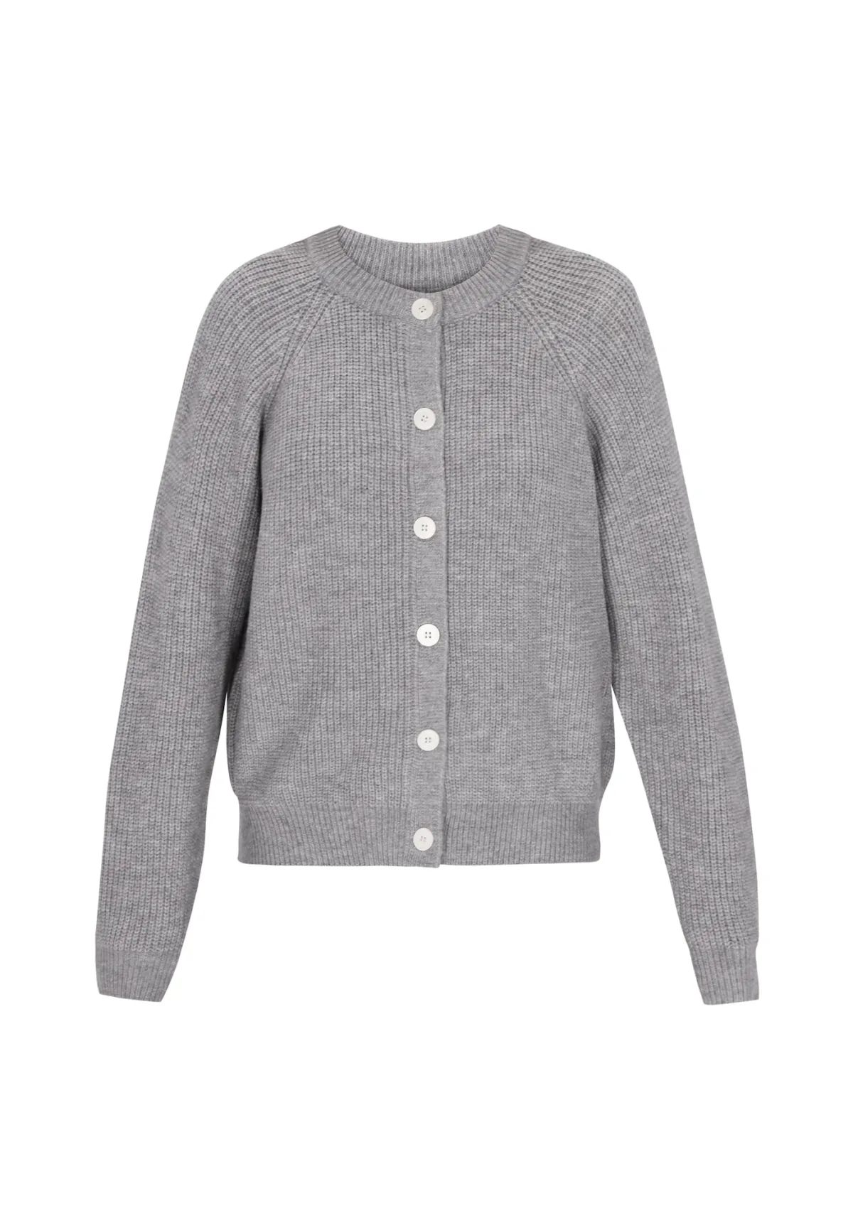 Design: Gevoerde zoom/rand, Knop placket, Raglanmouwen; Type sluiting: Knoopsluiting; Materiaal: Knitwear; Halstype: Ronde hals; Motief: Effen; Extra's: Op staal naden; Pasvorm: Normale pasvorm; Armlengte: Lange mouw; Lengte: Normale lengte