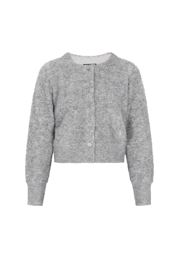 Design: Rechte zoom, Knop placket, Geribd ceintuurtje, Overcut schouder; Type sluiting: Knoopsluiting; Materiaal: Knitwear; Halstype: Ronde hals; Motief: Mélange; Extra's: Fully fashioned, Voelt zacht aan; Pasvorm: Normale pasvorm; Armlengte: Lange mouw; Lengte: Normale lengte