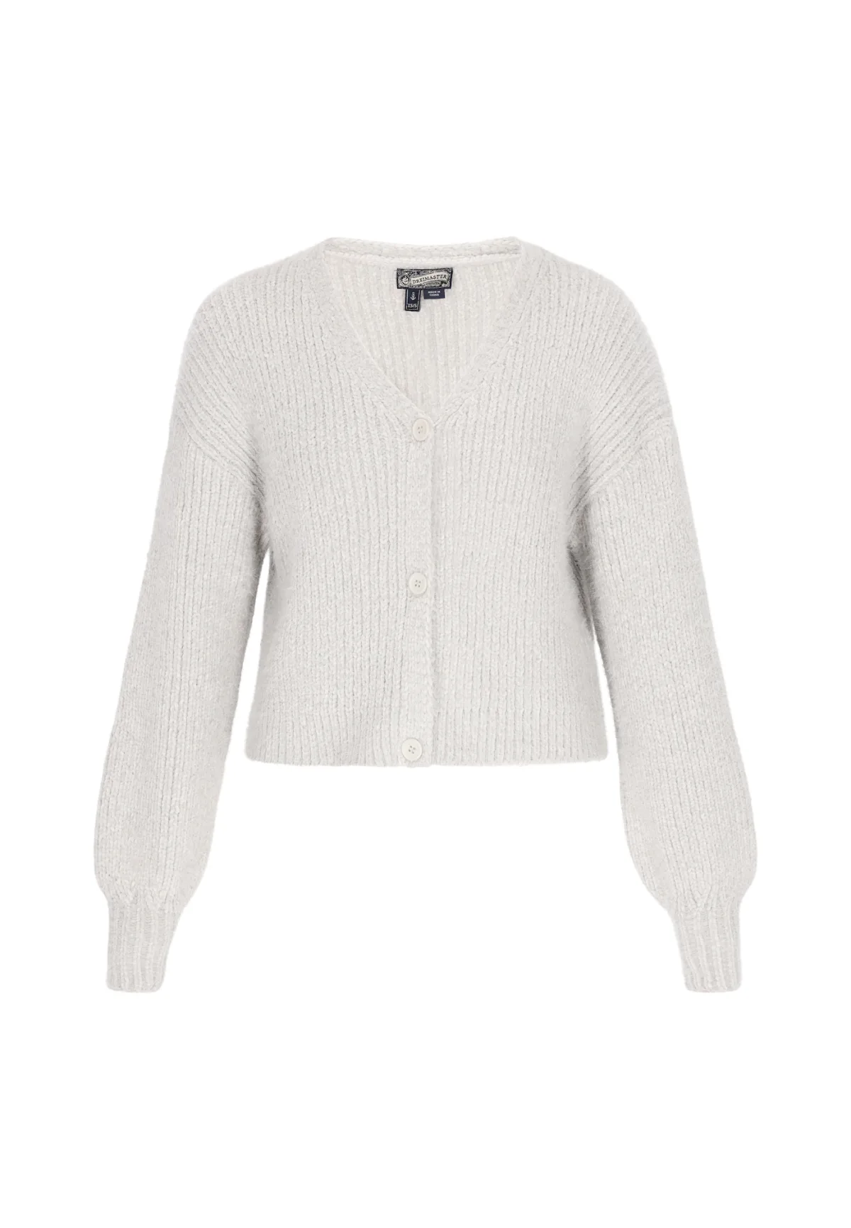 Design: Geribd ceintuurtje, Overcut schouder; Type sluiting: Knoopsluiting; Materiaal: Knitwear; Halstype: V-hals; Motief: Effen; Extra's: Fully fashioned, Met textuur; Pasvorm: Losse pasvorm; Armlengte: Lange mouw; Lengte: Normale lengte
